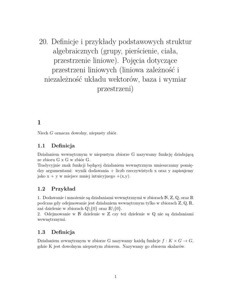 Działaniem wewnętrznym w niepustym zbiorze G nazywamy funkcję działającą
