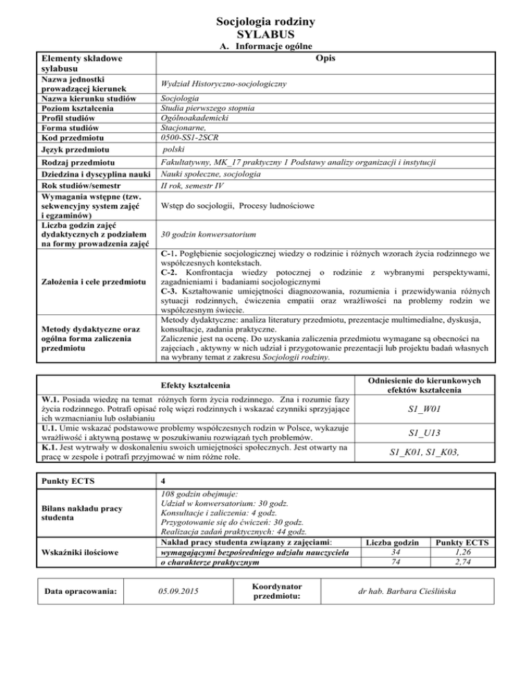 Socjologia rodziny SYLABUS