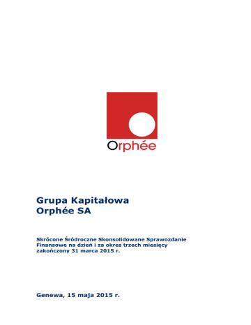 GRUPA KAPITAŁOWA Orphée SA