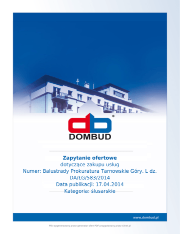 Zapytanie ofertowe: Balustrady Prokuratura Tarnowskie