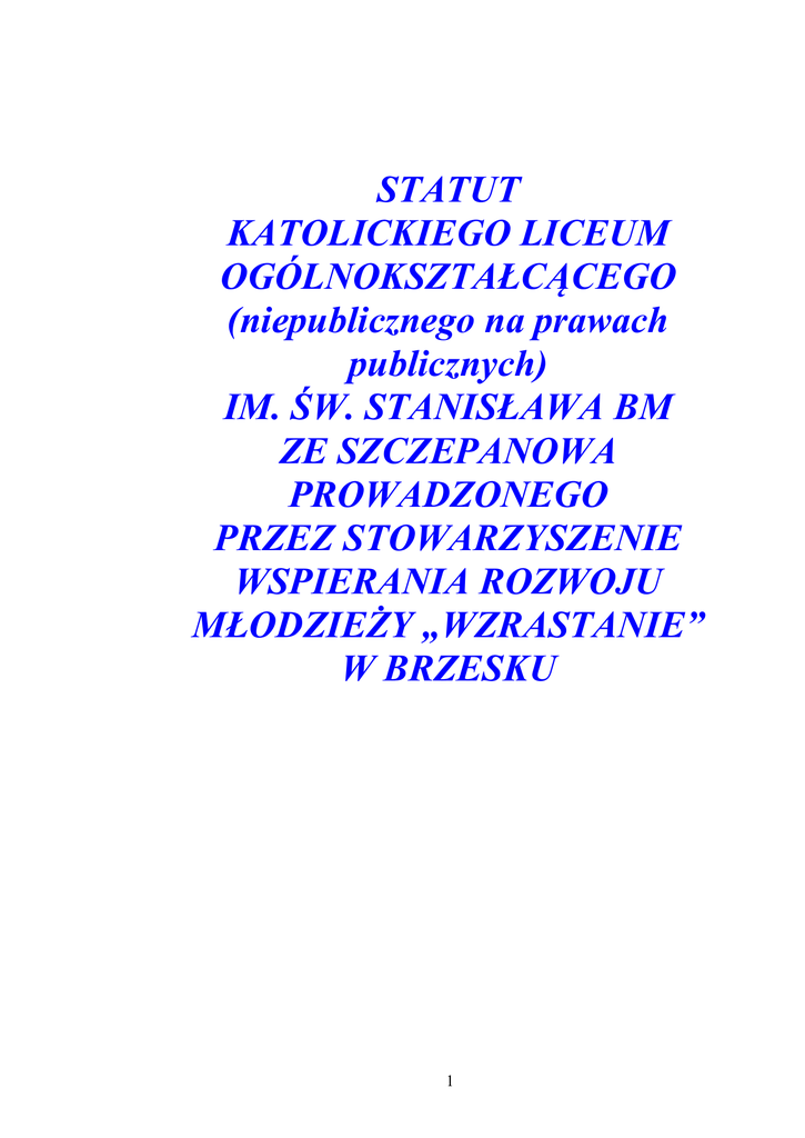 STATUT KATOLICKIEGO LICEUM OGÓLNOKSZTAŁCĄCEGO