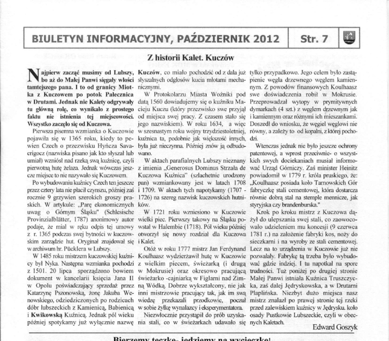 Z historii Kalet. Kuczow - Stowarzyszenie Nasze Kalety