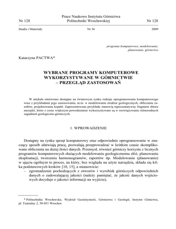 wybrane programy komputerowe wykorzystywane w górnictwie