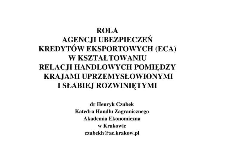ROLA AGENCJI UBEZPIECZEŃ KREDYTÓW EKSPORTOWYCH