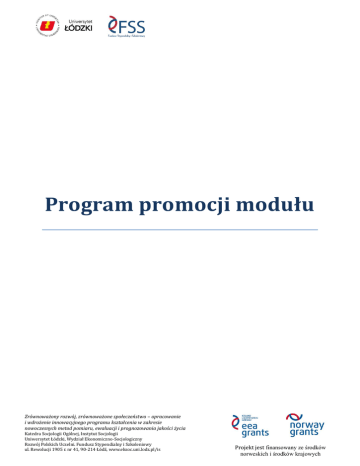 Program promocji modułu Zrównoważony rozwój, zrównoważone społeczeństwo – opracowanie i wdrożenie innowacyjnego programu kształcenia w zakresie nowoczesnych metod pomiaru, ewaluacji i prognozowania jakości życia Katedra Socjologii Ogólnej, Instytut Socjologii Uniwersytet Łódzki, Wydział Ekonomiczno-Socjologiczny Rozwój Polskich Uczelni. Fundusz Stypendialny i Szkoleniowy ul. Rewolucji 1905 r. nr 41, 90-214 Łódź, www.eksoc.uni.lodz.pl/is Projekt jest finansowany ze środków norweskich i środków krajowych Program promocji modułu został opracowany w ramach projektu Zrównoważony rozwój, zrównoważone społeczeństwo – opracowanie i wdrożenie innowacyjnego programu kształcenia w zakresie nowoczesnych metod pomiaru, ewaluacji i prognozowania jakości życia finansowanego ze środków norweskich i środków krajowych. Zespół projektowy: prof. dr hab. Ewa Rokicka (koordynator projektu) dr Marta Petelewicz dr Tomasz Drabowicz dr Wojciech Woźniak mgr Bartłomiej Przybylski mgr Marcin Gońda mgr Maciej Tomczak Zrównoważony rozwój, zrównoważone społeczeństwo – opracowanie i wdrożenie innowacyjnego programu kształcenia w zakresie nowoczesnych metod pomiaru, ewaluacji i prognozowania jakości życia Katedra Socjologii Ogólnej, Instytut Socjologii Uniwersytet Łódzki, Wydział Ekonomiczno-Socjologiczny Rozwój Polskich Uczelni. Fundusz Stypendialny i Szkoleniowy ul. Rewolucji 1905 r. nr 41, 90-214 Łódź, www.eksoc.uni.lodz.pl/is Projekt jest finansowany ze środków norweskich i środków krajowych Wprowadzenie Projekt Zrównoważony rozwój, zrównoważone społeczeństwo – opracowanie i wdrożenie innowacyjnego programu kształcenia w zakresie nowoczesnych metod pomiaru, ewaluacji i prognozowania jakości życia jest przedsięwzięciem edukacyjno-badawczym wdrażanym od 1 stycznia 2015 roku. Głównym celem projektu jest zwrócenie uwagi naukowców, studentów i opinii publicznej (lokalnej i regionalnej) na potrzebę kształcenia w zakresie związków rozwoju gospodarczego i kształtu polityki społecznej na poziomie miasta, województwa i kraju z zagadnieniami ochrony środowiska. Kluczowym rezultatem przedsięwzięcia jest stworzenie nowego modułu specjalizacyjnego, wypełniającego lukę w systemie edukacji, propagującego idee zrównoważonego rozwoju w kontekście jakości życia (Quality of life). Nowy moduł specjalizacyjny bazuje na innowacyjnych metodach dydaktycznych wykorzystujących nowe technologie. Ma na celu przekazanie studentom kompleksowej wiedzy oraz kształtowanie umiejętności zastosowania jej w praktyce. Nastawienie na praktyczne zastosowania zdobytej w trakcie przygotowania i realizacji modułu wiedzy gwarantuje nawiązanie partnerstwa z instytucjami biznesowymi i nieakademickimi. Zakończenie wdrażania projektu przewidywane jest na 31 maja 2016 roku. Liderem projektu jest Katedra Socjologii Ogólnej Uniwersytetu Łódzkiego. Partnerami przedsięwzięcia są z kolei: Atlas sp. z o.o.; Biuro Planowania Przestrzennego Województwa Łódzkiego w Łodzi reprezentowane przez Regionalne Obserwatorium Terytorialne Województwa Łódzkiego; Zakłady Chemiczne Organika SA; Centrum Zrównoważonego Rozwoju. Projekt Zrównoważony rozwój, zrównoważone społeczeństwo – opracowanie i wdrożenie innowacyjnego programu kształcenia w zakresie nowoczesnych metod pomiaru, ewaluacji i prognozowania jakości życia jest finansowany ze środków norweskich oraz środków krajowych. Zrównoważony rozwój, zrównoważone społeczeństwo – opracowanie i wdrożenie innowacyjnego programu kształcenia w zakresie nowoczesnych metod pomiaru, ewaluacji i prognozowania jakości życia Katedra Socjologii Ogólnej, Instytut Socjologii Uniwersytet Łódzki, Wydział Ekonomiczno-Socjologiczny Rozwój Polskich Uczelni. Fundusz Stypendialny i Szkoleniowy ul. Rewolucji 1905 r. nr 41, 90-214 Łódź, www.eksoc.uni.lodz.pl/is Projekt jest finansowany ze środków norweskich i środków krajowych Strategia promocyjna: 1. Identyfikacja grupy docelowej Najważniejszą grupą docelową kampanii promocyjnej są studenci II roku socjologii (studia stacjonarne, I stopnień), którzy mogą wybrać opracowany program, jako moduł wybieralny realizowany w trakcie III roku. Szerszą kategorią odbiorców jest środowisko akademickie: Instytut Socjologii, Wydział Ekonomiczno-Socjologiczny, naukowcy zajmujący się tematem zrównoważonego rozwoju spoza łódzkiego ośrodka. 2. Cele promocji Dotarcie do studentów II roku i przekonanie do wyboru opracowanego programu jako modułu specjalizacyjnego Dotarcie z informacją o realizowanym programie zajęć dotyczących zrównoważonego rozwoju do szerszej grupy studentów socjologii (również z I roku) Przekazanie informacji o aktywności członków Katedry Socjologii Ogólnej związanej z tematyką rozwoju zrównoważonego. Rozbudowa sieci kontaktów z innymi ośrodkami akademickimi zajmującymi się tematyką zrównoważonego rozwoju. 3. Koncepcja komunikacji – proponowane działania Grupa docelowa: studenci/cel: rekrutacja A. Kanały internetowe strona projektu – należy rozwinąć informacje zawarte na stronie, umieścić program specjalizacji, ofertę (wyjazdy, praktyki,), uwypuklić możliwość kontaktu pomiędzy praktykami a studentami, wypowiedzi partnerów, sylwetka absolwenta. mailing – przygotować informator rozsyłany na maila dla studentów II roku, zawierający informacje o programie, wyjazdach, ofercie praktyk, przekazujący zwięźle największe korzyści/ szanse z wyboru specjalizacji. Zrównoważony rozwój, zrównoważone społeczeństwo – opracowanie i wdrożenie innowacyjnego programu kształcenia w zakresie nowoczesnych metod pomiaru, ewaluacji i prognozowania jakości życia Katedra Socjologii Ogólnej, Instytut Socjologii Uniwersytet Łódzki, Wydział Ekonomiczno-Socjologiczny Rozwój Polskich Uczelni. Fundusz Stypendialny i Szkoleniowy ul. Rewolucji 1905 r. nr 41, 90-214 Łódź