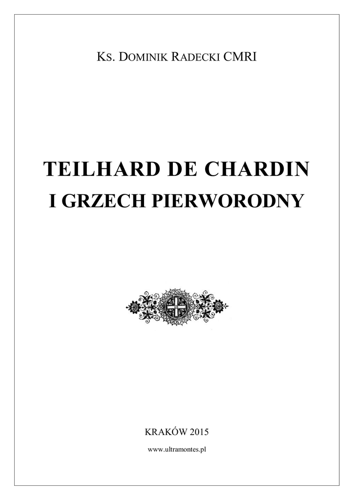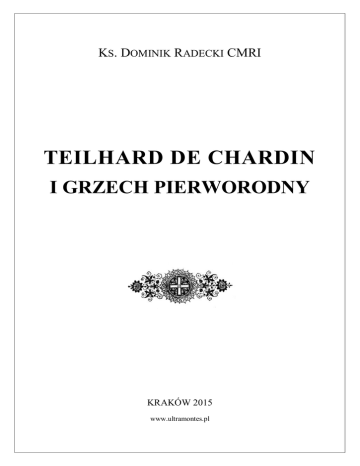 KS. DOMINIK RADECKI CMRI TEILHARD DE CHARDIN I GRZECH PIERWORODNY KRAKÓW 2015 www.ultramontes.pl Teilhard de Chardin i grzech pierworodny KS. DOMINIK RADECKI CMRI ––––––– Minęło niemal 50 lat od rozpoczęcia Vaticanum II, soboru, który zapoczątkował daleko idące zmiany w każdym aspekcie katolickiej religii. Sobór był prawdziwą rewolucją – buntem przeciwko Kościołowi i przeciwko Bogu. Kim byli jego pomysłodawcy? W niniejszym artykule przyjrzymy się jednemu z głównych architektów Vaticanum II, który choć nie był bezpośrednio zaangażowany w jego obrady, to jednak jego myśli i nauki stały się źródłem inspiracji wielu zmian tego haniebnego zgromadzenia. Pomimo tego, dzisiaj niewielu katolików wie, kim on był albo co głosił. Dla zrozumienia odmienionego myślenia soborowego kleru, naprawdę konieczne jest zrozumienie doktryny i wpływu Teilharda de Chardin. Poczynając od lat dwudziestych ubiegłego wieku aż po dzień dzisiejszy jego heretyckie poglądy i prace – takie jak negacja grzechu pierworodnego oraz istnienia Adama i Ewy – są szeroko rozpowszechnione wśród duchownych i świeckich. Tak jak Marcin Luter zapalił płomień protestanckiej rewolty i zatruł ogół ludzi, tak samo błędne koncepcje Teilharda zainfekowały wielu duchownych, którzy uczestniczyli w Drugim Soborze Watykańskim. W rezultacie ukształtowała się nowa liturgia i nowy kościół. Twórczość Pierre'a Teilharda de Chardin Pierre Teilhard de Chardin (1881-1955) był francuskim jezuitą, który głosił naukę będącą połączeniem darwinowskiej ewolucji i rewolucyjnej "katolickiej" teologii. W wyznawanej przez modernistów teologii ewolucyjnej, pojęcie niezmiennego Depozytu Wiary jest odrzucane, ponieważ nic nie jest wolne od substancjalnej zmiany. Henri Rambaud podsumowywał modernistyczne przekonania Teilharda, stwierdzając: "Jego wiara nie była wiarą Kościoła katolickiego i on o tym wiedział. Studiował przecież dostatecznie długo by wiedzieć o tym, że Wiara Kościoła jest wiarą w słowa Jezusa Chrystusa i że w konsekwencji ta wiara nie może się substancjalnie zmienić" (The Strange Faith of Teilhard de Chardin, str. 23). 2 W 1907 roku Papież św. Pius X opisał podstępny charakter modernistów takich jak Teilhard, którzy "zuchwale narzucają się na odnowicieli Kościoła i w zwartym szeregu zaczepiają butnie najświętsze sprawy w dziele Chrystusowym, nie oszczędzając nawet Osoby Boskiego Zbawiciela, w której nie widzą w świętokradzkim zuchwalstwie nic więcej, jak tylko zwykłego, pospolitego człowieka". W innym miejscu swojej encykliki Papież św. Pius X cytuje Papieża Grzegorza XVI, który, w 1834 roku, również potępił modernizm w Singulari Nos: "Ślepi, zaprawdę, i wodzowie ślepych, pysznym umiejętności mianem nadęci, w swym nierozumie posuwają się tak daleko, że odwieczne prawdy znaczenie i jedynie prawdziwe pojęcie religii wywracają: nowy wynajdując system, «w którym z powodu niegodziwej i nieokiełznanej żądzy nowości nie szuka się prawdy tam, gdzie się ona na pewno znajduje, ale z pominięciem świętych i apostolskich tradycji głosi się inne poglądy, pozbawione treści, mgliste, niepewne, niezatwierdzone przez Kościół, którymi ludzie, hołdujący najzupełniej próżności, wedle swego mniemania podpierają i podtrzymują prawdę samą»" (ibid., n. 13). Koncepcje Teilharda są całkowicie przeciwne tradycyjnej katolickiej wierze. Większość jego pism, w tym wielki zbiór korespondencji, nie została za jego życia opublikowana, ponieważ dla Rzymu i różnych władz kościelnych było oczywiste, że jego nauki są błędne. Jak tylko mogli starali się zatem go uciszyć i zapobiec rozpowszechnianiu jego prac. "W 1927 roku Rzym odmówił udzielenia imprimatur książce [Teilharda], Le Milieu Divin. W 1933 roku zakazano mu wykładów w Paryżu. W 1933 roku Rzym odmówił mu zgody na publikację L'Energie Humaine. W 1944 roku jego książka Phenomene Humain została zakazana. W 1948 roku, wezwany do Rzymu przez swego Przełożonego Generalnego, [Teilhard] kolejny raz ubiegał się o pozwolenie na wydanie Phenomene Humain – i nie otrzymał go. W latach 1949 i 1955 jego książki i działalność znów były blokowane. W grudniu 1957, dekret Świętego Oficjum nakazał wycofanie jego prac z katolickich bibliotek, seminariów, religijnych instytucji i księgarń" (ks. Charles Coughlin, Bishops Versus Pope, ss. 215-216). "Większość prac ukazała się drukiem dopiero po jego śmierci, ponieważ wiele wyznawanych przez niego poglądów było uważane przez różne władze kościelne za nazbyt odbiegające od prawowierności... Otwartość w wyrażaniu opinii na temat wielu tradycyjnie sformułowanych doktryn Kościoła, takich jak 3 grzech pierworodny, szczerze zaniepokoiła jego przełożonych i tak, w 1925 roku, «w życzliwy sposób» poinstruowano go, by skoncentrował się na pracy naukowej i powrócił do Chin" (R. Wayne Kraft, The Relevance of Teilhard, s. 20). "W rzeczywistości, Teilhard został uciszony przez faktyczne wygnanie z Europy" (Hugh McElwain OSM, Introduction to Teilhard de Chardin, s. 8). Zmarł nagle w Nowym Jorku w Wielkanoc 1955 roku. Jego ostatnie słowa brzmiały: "Tym razem, czuję, że to straszne" (Leroy, Teilhard de Chardin: The Man s. 33). "Nie wolno mu było publikować swych najważniejszych prac za życia i faktycznie, nigdy nie zostały wydane z Nihil obstat i Imprimatur" (Leroy, op. cit., s. 29). Krótko przed inauguracją Drugiego Soboru Watykańskiego, 30 czerwca 1962, Święte Oficjum wydało monitum (ostrzeżenie) "przed dwuznacznościami, a nawet poważnymi błędami przeciwnymi katolickiej nauce" (T. Lincoln Bouscaren SJ, Canon Law Digest, vol. 5, ss. 621-622) zawartymi w jego pracach. "W 1963 roku Wikariat Rzymski nakazał w dekrecie, aby katolickie księgarnie Rzymu wycofały z obiegu dzieła de Chardina, jak również książki sprzyjając