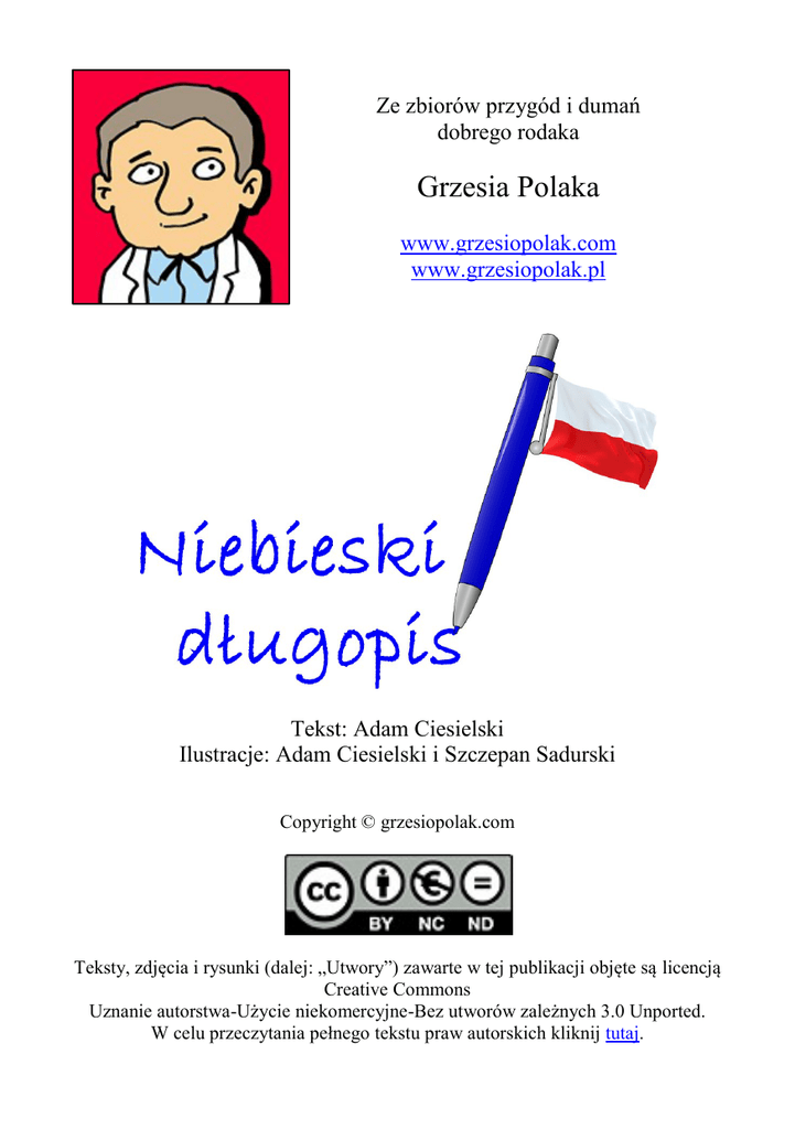 Ze zbiorów przygód i dumań dobrego rodaka Grzesia Polaka www.grzesiopolak.com www.grzesiopolak.pl Tekst: Adam Ciesielski Ilustracje: Adam Ciesielski i Szczepan Sadurski Copyright © grzesiopolak.com Teksty, zdjęcia i rysunki (dalej: „Utwory”) zawarte w tej publikacji objęte są licencją Creative Commons Uznanie autorstwa-Użycie niekomercyjne-Bez utworów zależnych 3.0 Unported. W celu przeczytania pełnego tekstu praw autorskich kliknij tutaj. Niebieski długopis grzesiopolak.com „Co poniektórzy wciąż używają niebieskich długopisów!” Powyższe słowa wyrwały Grzesia z przyjemnych medytacji o seksownej stażystce Nicky. Na twarzy plątał mu się marzycielski uśmieszek, a w głowie powstawała spryciarska strategia uwodzicielska, gdy gruba przełożona ucięła brutalnie konstruktywne aktywności. Nie wytrzymała: musiała zaakcentować swój pożytek dla szpitala poprzez poruszenie kwestii kardynalnej, mianowicie koloru notatek doktorskich. Przerażająca większość osobników na stanowiskach kierowniczych utożsamia elokwencję z czczą gadaniną. Pozycja władzy na skraweczku piętra, w budynku małej organizacji, daje im okazję do wywnętrzenia szczytowych produktów długotrwałego procesu myślowego. Reszta pokornie słucha, spętana herarchiczną subordynacją, co utwierdza autora wypocin mózgowych w przekonaniu o władaniu inteligencją. Lata praktyki nauczyły Grzesia sztuki hibernacji w czasie nudnych zebrań. Niełatwo było go ocknąć ze stanu odrętwienia, lecz sprawa poruszona przez otyłą siostrę uderzyła w czułe miejsce. Ponad 20 uczestników spotkania wbiło w nieszczęśnika oskarżycielski wzrok: oto zanieczyszczał historie chorób pacjentów błękitnym atramentem, gardząc utartymi zasadami stosowania czarnych pisadeł. Nasrożył się jak kwoka broniąca piskląt. Przyzwyczajenie wyniósł z kraju rodzinnego, gdzie praktycznie każdy korzystał z niebieskich długopisów (przynajmniej w jego czasach). Papier pokryty znakami ziomków oplizował głębokim granatem morza, natomiast jaśniejsze tinty roztaczały przed obserwatorem niebiański bezkres - miałby efekty takiego kalibru przehandlować za kartki umorusane sadzą?! O, takiego! Nigdy! Krew zawrzała, spojrzenie zhardziało, serce zabiło narodową dumą: czego chceta, agresory?! Niby jaka jest przyczyna dyspozycji dotyczącej odcienia stosowanego tuszu?! Napastnicy zawyli gromko: w szczególnych przypadkach prawo wymaga reprodukcji dokumentów, a fotokopiarki nie odbiją lazurowych gryzmołów! 1 Niebieski długopis grzesiopolak.com Wyszczerzył patriotyczne kły, napiął słowiańskie mięśnie: bzdura! Ględzą o zamierzchłych czasach Noego, kiedy gromadzono duplikaty w formie nieczułych na tonacje, czarno-białych mikrofilmów. Nowoczesne urządzenia odbiją nawet pastelowe obrazki, zaostrzając doskonale kontrast. Butnie zaproponował przechadzkę do najbliższego powielacza w celach demonstracyjnych. Sugestię skwitowano szyderczym śmiechem: bujdy na resorach! Poza tym istnieją wyraźne instrukcje co do barw notatek, więc dyskusja jest zakończona! Cooo?! Siłą na Polaka?! Urojonym butem administracyjnym chcą kopać w zęby?! Pytluje ich językiem, spędza Boże Narodzenie w 40stopniowych upałach wśród czarnych świętych mikołajów, jeździ jak wariat po lewej stronie ulicy, toleruje brak śniegu, nastraja styl życia do setek innych zwyczajów oraz praw, zaś teraz ma dobrowolnie oddać ostatni etniczny totem - niebieski długopis?! Po jego trupie! Proszę potwierdzić urzędowym papierem, że połudiowoafrykańska służba zdrowia dostała rzeczywiście formalny rozkaz kaligrafowania wyłącznie na smolisto. Pogrożono palcem; fuknięto ze złością; zaprzysiężono przynieść dowód rzeczowy. Partie rozeszły się, prychając jedna na drugą impertynencko. Zobaczymy! Na następnej zbiórce rzucono mu na blat rękawicę: wydruk e-maila od samego radcy prawnego. Korespondencja z głównego zarządu, proszę pana mądralińskiego! Niech poczyta, przetrawi, grzecznie przeprosi, zmieni wkłady w mazakach na hebanowe, przestanie podskakiwać. Krótki tekst stwierdzał istotność prowadzenia wyczerpującego, czytelnego tudzież starannego rejestru poczynań medycznych (wywiad, badanie, diagnoza, plan działania, obserwacje, wyniki laboratoryjne itd.). Podkreślono znaczenie protokołowania daty i godziny. Sugerowano utylizowanie czarnego atramentu. 2 Niebieski długopis grzesiopolak.com Wroga sfora obserwowała z żenadą haniebną klęskę przybysza z Europy Wschodniej. Delikatnie zaoferowano rozejm, który pokonany miałby przypieczętować wyrazami skruchy. Grzesio wstał z włosami nastroszonymi niczym husarskie pióra. Bałwana z niego lepią?! Cież poczta jedynie proponuje fason kruczy – to nie dyrektywa, jeno podszept! Podstępem pragną wyłuskać z jego prawicy nacjonalistyczny, szafirowy miecz! Obce ręce precz od ojczyźnianego insygnium! Przestańta wnerwiać, bo na zielono pocznę smarować! Zabierzta - ino migiem - faryzejską bumagę! Odtąd każdy mógł rozpoznać grzesiowe kulfony: nie po charakterze pisma, lecz po kolorze. —————————————————– Wiele tzw. przepisów w miejscu pracy nie znajduje odzwierciedlenia w oficjalnych rozporządzeniach. Chwilowe regulacje ulegają nagminnie metamorfozie (dzięki wierze zatrudnionych) w dogmy - do stopnia kiełkowania grupkek strażników organizacyjnych „tradycji”. Indywidua o małej kompetencji zostają samozwańczymi wykidajłami instytucji, gotowymi prać współpracowników kontestujących logikę wybranych prawideł. Warto dociekać źródeł oraz służbowej afirmacji bezsensownych wytycznych, w imię dobra wszystkich marnujących czas. Egzystencja absurdów jest często możliwa tylko ze względu na ślepą karność podwładnych, kontynuujących rytuały - wręcz natręctwa - wbrew zdrowemu rozsądkowi. Niech żyje niebieski długopis! 3 Niebieski dług