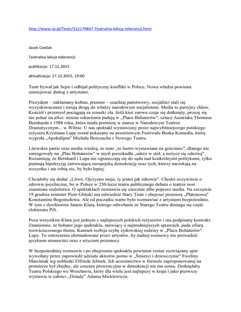 Teatralna lekcja tolerancji – Jacek Cieślak – Rzeczpospolita