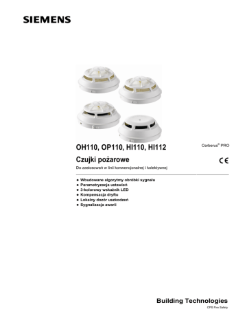 OH110, OP110, HI110, HI112 Cerberus® PRO Czujki po arowe Do zastosowa w linii konwencjonalnej i kolektywnej Wbudowane algorytmy obróbki sygna u Parametryzacja ustawie 3-kolorowy wska nik LED Kompensacja dryftu Lokalny dozór uszkodze Sygnalizacja awarii Building Technologies CPS Fire Safety Dane rodowiskowe – eksploatacja przyjazna rodowisku naturalnemu – konstrukcja z materia ów odnawialnych – odzielny modu elektroniki i obudowa Charakterystyka dzia ania – odporno na warunki rodowiskowe i zwi zane z nimi zak ócenia takie jak: kurz, py , owady, wilgotno , skrajne temperatury, zak ócenia elektromagnetyczne, opary korozyjne, drgania – odporno na uderzenia – zabezpieczenie przed manipulacj przez osoby nieuprawnione – ochrona podzespo ów elektronicznych, elementy wysokiej jako ci – wbudowany wska nik zadzia ania (AI), widzialno 360° – maks. 2 zewn trzne wska niki zadzia ania typu FDAI91/FDAI92/FDAI93 pod czane do czujki – wbudowane algorytmy obróbki sygna u – jeden typ gniazda dla ka dego typu czujki, dla instalacji pod- i natynkowej – – – – – Akcesoria dodatkowe Element blokuj cy czujk w gnie dzie LP720 zabezpieczenie przed kradzie P ytka opisowa FDBZ291 Element uszczelniaj cy RS720 Mikroz cze DBZ1190-AA (0.28 … 0.5 mm2) Z cze pomocniczeDBZ1190-AB (1.0 … 2.5 mm2) OH110 Czujka wielodetektorowa Zestaw czujki: – Uk ad detekcyjny w komorze pomiarowej (czujka) – Os ona zabezpieczaj ca przed zapyleniem podczas prac budowlanych Dzia anie – Analiza wiat a rozproszonego w przód przez pojedynczy czujnik optyczny – Komora opto-elektroniczna eliminuje oddzia ywanie z zak ócaj cym promieniowaniem zewn trznym, co pozwala na optymaln detekcj cz steczek dymu – Dodatkowy czujnik ciep a zwi ksza odporno czujki na zjawiska zwodnicze – Wybór czu ci uk adu detekcyjnego – Parametr 1: Czu y – Parametr 2: Odporny – Odporno na zak ócenia powoduj ce fa szywe alarmy Zastosowanie – Wczesne wykrywanie po arów p omieniowych spowodowanych spalaniem cieczy i cia sta ych oraz po arów tl cych – Wczesne i niezawodne wykrywanie po arów w rodowisku zjawisk zwodniczych 2 Building Technologies CPS Fire Safety OP110 Czujka dymu Zestaw czujki: – Uk ad detekcyjny w komorze pomiarowej (czujka) – Os ona zabezpieczaj ca przed zapyleniem podczas prac budowlanych Dzia anie Analiza wiat a rozproszonego w przód przez pojedynczy czujnik optyczny – Komora opto-elektroniczna eliminuje oddzia ywanie z zak ócaj cym promieniowaniem zewn trznym, co pozwala na optymaln detekcj cz steczek dymu – Wybór czu ci uk adu detekcyjnego: – Parametr 1: Standard – Parametr 2: Czu y – Zastosowanie – Wczesne wykrywanie dymu powsta ego przy po arach tl cych HI110 Czujka ciep a (nadmiarowo-ró niczkowa) Zestaw czujki: – Uk ad detekcyjny w komorze pomiarowej (czujka) Dzia anie Czujka wyposa ona w jeden czujnik temperatury – Do wymaga ponadstandardowych – Pewna detekcja wolnych i szybkich przyrostów temperatury, oraz w przekroczenia progu temperatury – Ustawiony parametr: A1R – Zatosowanie – W rodowisku zanieczyszczonym, o du ym zapyleniu lub wysokiej wilgotno ci, gdzie standardowa czujka mog aby ulec uszkodzeniu HI112 Czujka ciep a (nadmiarowa) Zestaw czujki: – Uk ad detekcyjny w komorze pomiarowej (czujka) Dzia anie Czujka wyposa ona w jeden czujnik temperatury – Pomiar temperatury otoczenia; po przekroczeniu okre lonego progu temperatury do centrali po arowej zostaje wys any sygna alarmowy – Wybór czu ci uk adu detekcyjnego – Parametr 1: A2S – Parametr 2: B – Zastosowanie – W rodowisku zanieczyszczonym, lub z du ymi zmianami temperatury, gdzie czujka standardowa mog aby wskazywa alarmy fa szywe. 3 Building Technologies CPS Fire Safety Gniazdo czujki DB110 (Ustaw Parametr 1) Dzia anie Uniwersalne gniazdo dla wszystkich punktowych czujek konwencjonalnych serii 110 – W czujce ustaw parametr 1 – Zastosowanie – Do monta u okablowania prowadzonego podtynkowo – Do monta u okablowania prowadzonego natynkowo i rednicy do 8 mm Gniazdo czujki DB110D (Ustaw Parametr 1) zgodno z BS5839 Cz 1 Dzia anie Gniazdo dla wszystkich punktowych czujek konwencjonalnych serii 110 wyposa one w diod dla zapewnienia ci ci linii – W czujce ustaw parametr 1 – Zastosowanie – Do monta u okablowania prowadzonego podtynkowo – Do monta u okablowania prowadzonego natynkowo i rednicy do 8 mm Gniazdo czujki DB110R (Ustaw Parametr 2) Dzia anie Gniazdo dla wszystkich punktowych czujek konwencjonalnych serii 110 wyposa one w rezystor do parametryzacji ustawie – W czujce ustaw parametr 2 – Zastosowanie – Do monta u okablowania prowadzonego podtynkowo – Do monta u okablowania prowadzonego natynkowo i rednicy do 8 mm Gniazdo czujki DB110RD (Ustaw Parametr 2) zgodno z BS5839 cz 1 Dzia anie – Gniazdo dla wszystkich punktowych czujek konwencjonalnych serii 110 wyposa one w rezystor do parametryzacji ustawie i diod dla zapewnienia ci ci linii – W czujce ustaw parametr 2 Zastosowanie – Do monta u okablowania prowadzonego podtynkowo – Do monta u okablowania prowadzonego natynkowo i rednicy do 8 mm Podstawa gniazda czujki BA720 Zastosowanie – Umo liwa monta okablowania w korytkach natynkowych (max. 20 mm) i wykorzystania jako acznika magistral (max. 25 mm x 15 mm) – Po enie czujki jest ustalone dociskiem spr yny. 4 Siemens Building Technologies CPS Fire Safety Monta atwa instalacja – Uniwersalne gniazdo wraz z: – 2 boczne przepusty kablowe do wprowadzenia okablowania prowadzonego natynkowo o rednicy maks. 8 mm – du e otwory monta owe do atwego wprowadzenia okablowania podtynkowego – Bardzo du e szczeliny monta owe u atwiaj ce ponowne wykorzystanie otworów wywierconych podczas monta u innych systemów – Zaciski po czeniowe dla kabli o rednicy do 2.5 mm2 – Miejsce na dodatkowe mikroz cza 2x DBZ1190-AA i 2x DBZ1190-AB Zaciski po czeniowe linii oraz zewn trznego wska nika zadzia ania Miejsce na mikrocza DBZ1190AA, DBZ1190-AB Wewn trzny wska nik zaOtw