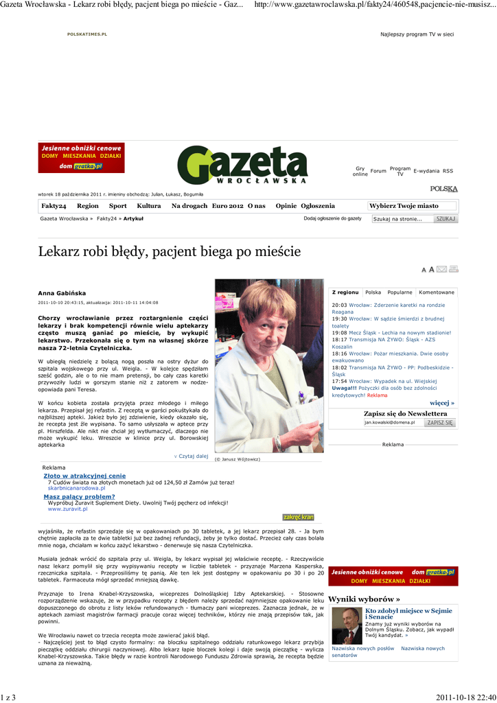 18.10.2011 Treść artykułu w Gazecie Wrocławskiej, do którego