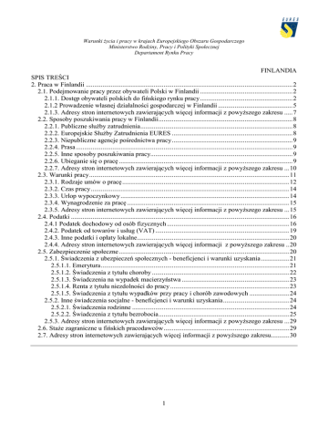 1 FINLANDIA SPIS TREŚCI 2. Praca w Finlandii - Eures