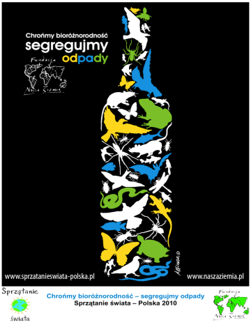 Chrońmy bioróżnorodność – segregujmy odpady Sprzątanie świata – Polska 2010 Chrońmy bioróżnorodność – segregujmy odpady Sprzątanie świata – Polska 2010 Drodzy Przyjaciele Ziemi! Minął kolejny rok naszych wspólnych działań dla zachowania i poprawy stanu środowiska naturalnego w Polsce. Razem z Wami już od trzech lat prowadzimy Kampanię na rzecz Zrównoważonego Rozwoju, w której uczymy jak rozwijać naszą cywilizację z jednoczesnym poszanowaniem i uwzględnieniem potrzeb innych gatunków i całej przyrody. Poprzez Kampanię włączamy się w realizację założeń „Dekady Edukacji dla Zrównoważonego Rozwoju” UNESCO, przypadającej na lata 2005-2014. Dziesięcioletni program edukacyjny UNESCO znajduje się aktualnie na półmetku, ale dużo jeszcze zostało nam wszystkim do zrobienia. Z jednej strony, już ponad 70% polskiego społeczeństwa podziela ideę i uznaje zasady rozwoju zrównoważonego, ale z drugiej strony - nasze codzienne zachowania związane z zakupami i konsumpcją, segregowaniem odpadów czy oszczędnością energii wciąż pozostawiają wiele do życzenia. Świadomość ekologiczna Polaków rośnie. Teraz jesteśmy zdolni do spojrzenia na problem ochrony środowiska o wiele szerzej. Hasło tegorocznej akcji „Sprzątanie Świata – Polska” brzmi: „Chrońmy bioróżnorodność – segregujmy odpady”. W jaki sposób fakt selekcjonowania śmieci może mieć wpływ na zachowanie różnorodności biologicznej? Odpowiedź na to pytanie nie jest trudna! Segregacja odpadów, a zaraz po niej ich recykling doprowadza do zachowania nieodnawialnych zasobów Ziemi, a od ich obecności z kolei zależy przetrwanie gatunków. Dzięki sortowaniu śmieci oszczędzamy drzewa i lasy poprzez powtórne wykorzystanie makulatury albo doprowadzamy do mniejszego zużycia ropy naftowej, poddając recyklingowi zebrany plastik. Chroniąc przed wycinką lasy ratujemy nie tylko same drzewa lecz cały ekosystem od nich zależny - miliony gatunków leśnych połączonych ze sobą nierozerwalnie poprzez łańcuchy pokarmowe i inne sieci zależności. Z kolei poprzez zmniejszenie zużycia ropy naftowej będziemy emitować mniej dwutlenku węgla oraz zanieczyszczeń takich jak tlenki azotu. Dzięki temu będziemy pozytywnie wpływać na klimat, nie narażając innych gatunków na negatywne konsekwencje globalnego ocieplenia. Ponadto ochronimy przyrodę przed szkodliwym oddziaływaniem zanieczyszczeń. Zyskają na tym przede wszystkim gatunki wyjątkowo wrażliwe takie jak rzadkie, zagrożone wyginięciem rośliny, porosty, czy owady. Rok 2010 został ogłoszony przez ONZ Międzynarodowym Rokiem Różnorodności Biologicznej. Fundacja Nasza Ziemia oraz Fundacja „Sprzątanie Świata – Polska” również pragną zwrócić Waszą uwagę na potrzebę ochrony bioróżnorodności. Pamiętajmy, że najprostszym sposobem ochrony zagrożonych gatunków są nasze codzienne, świadome decyzje. Segregując odpady, oszczędzając wodę i energię, zastępując samochód komunikacją publiczną lub rowerem chronimy zarówno przyrodę w całej jej złożoności, jak i nas samych! Już 17-sty raz „Sprzątanie Świata” ma miejsce w Polsce! Jak co roku zapraszamy szkoły, gminy, ośrodki szkolno - wychowawcze, firmy, a także inne zainteresowane instytucje oraz osoby prywatne do wzięcia udziału w akcji „Sprzątanie świata - Polska”. W tym roku termin ogólnoświatowej akcji „Clean up the World” przypada na 17 – 19 września. W tym czasie pragniemy zachęcić wszystkich mieszkańców Polski, by organizowali lokalne akcje sprzątania. W tym roku w sposób szczególny pragniemy skupić się na wodzie i zachęcić Polaków do sprzątania na terenach nadrzecznych. Wobec wyjątkowej sytuacji w kraju i w całej Europie, w związku z licznymi powodziami i podtopieniami, pragniemy niezależnie od hasła przewodniego tegorocznej akcji, zainspirować Was do oczyszczania terenów nadwodnych. Lokalizując swoją akcję 'Sprzątania Świata” w południowej Polsce, nie tylko przyczynicie się do poprawy jakości wody w rzekach, ale i pomożecie licznym poszkodowanym. Ponadto będziecie wówczas mieli pozytywny wpływ na sam Bałtyk – nasze jedyne morze – które będzie tak czyste, jak czysta będzie najmniejsza rzeka lub strumyk w naszym kraju. Jeśli chcecie wspomóc powodzian – zgłoście się do nas – podpowiemy gdzie, komu i w jaki sposób najlepiej pomóc. Jak zawsze prosimy nie tylko o przyłączenie się do akcji sprzątania, ale w pierwszej kolejności - o nieśmiecenie i pilnowanie, aby nie śmiecono! Nie tolerujmy tego - każde wykroczenie należy zgłaszać policji lub straży miejskiej, w swoim urzędzie gminy, a warto także mediom. Taka współpraca jest potrzebna i korzystna. Przy organizacji akcji sprzątania zachęcamy do kontaktu z nadleśnictwami, kołami łowieckimi i wędkarskimi. Znajdziecie tam fachową i życzliwą pomoc. Stosujcie zasady sortowania zebranych śmieci i pamiętajcie: segregując odpady chronimy jednocześnie różnorodność biologiczną! Zamieściliśmy na naszym portalu internetowym ankietę udziału w akcji „Sprzątanie świata- Polska”. Prosimy wszystkich uczestników akcji o jej wypełnienie i przesłanie do nas. Przyślijcie też zdjęcia, najlepiej w wersji elektronicznej. Będziemy o Waszych akcjach i projektach na bieżąco informować w naszych serwisach internetowych. Zachęcamy do wykorzystania elektronicznego formularza sprawozdania na www.naszaziemia.pl, www.sprzatanieswiata-polska.pl. Jak zawsze, serdecznie dziękujemy wszystkim Darczyńcom, Przyjaciołom, Wolontariuszom i wszystkim Ludziom Dobrej Woli, którzy działają dla naszej Ziemi. Mira Stanisławska-Meysztowicz Prezes Zarządu [email protected] Sławek Brzózek Wiceprezes Zarządu [email protected] Zachęcamy: • korzystając z materiałów przygotowanych przez Fundację Nasza Ziemia (plakaty, informacje merytoryczne, spoty, kampanie informacyjn
