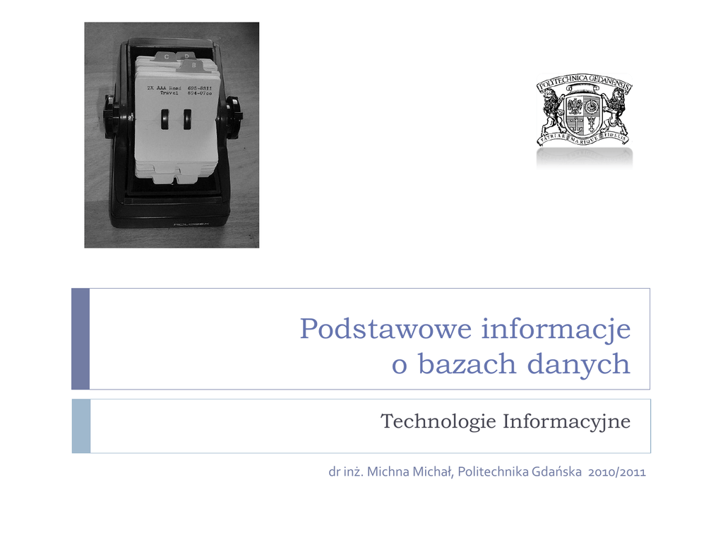 Baza danych – zbiór informacji zapisanych w ściśle