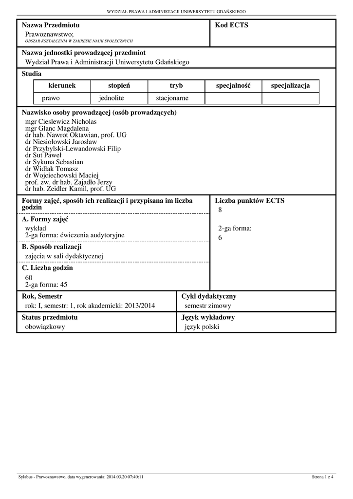 Sylabus - Wydział Prawa i Administracji Uniwersytetu Gdańskiego