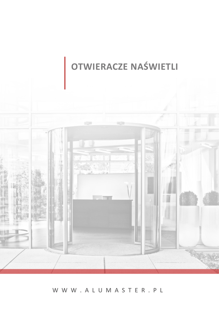OTWIERACZE NAŚWIETLI W W W . A L U M A S T E R . P L OTWIERACZE NAŚWIETLI WINDOWS AND DOORS SOLUTIONS OL 90 Charakterystyka wyrobu: ● ● ● ● ● ● ● ● ● bezproblemowy montaż również w przypadku głębokich ościeżnic duża szerokość rozwarcia 170mm niewidoczne śruby mocujące małe zapotrzebowanie na miejsce ponad skrzydłem i z jego boków blokada nożyc pełna szerokość rozwarcia przy wszystkich wysokościach skrzydeł łatwa regulacja docisku z automatycznym wyrównaniem niedokładności przylegania pewne naprowadzenie skrzydła bez elementów ślizgowych wszystkie widoczne elementy wykonane z lekkiego metalu SZEROKOŚĆ OTWARCIA 170 mm MAKSYMALNY CIĘŻAR SKRZYDŁA 80 kg SZEROKOŚĆ SKRZYDŁA MIN/MAKS Min 380/maks 1200/2400/3600mm (1,2,3 nożyce) WYSOKOŚĆ SKRZYDŁA Min 250 mm ILOŚĆ MIEJ SCA KONIECZNA DO MONTAŻU 19-27 mm ELEMENTY OBSŁUGOWE Dźwignia ręczna, korba albo siłownik elektryczny, liniowy Zakres zastosowania: � � � � � � do okien wykonanych z drewna, tworzywa termoplastycznego lub lekkiego metalu do okien prostokątnych, uchylnych i odchylnych, otwierających się do wewnątrz o maksymalnym ciężarze skrzydła do 80 kg do okien uchylnych skośnych, otwierających się do wewnątrz o maksymalnym ciężarze skrzydła do 80 kg do okien z łukiem okrągłym o kącie powyżej 150°, otwierających się do wewnątrz o maksymalnym ciężarze skrzydła do 80 kg do okien z łukiem płaskim o kącie poniżej 150°, otwierających się do wewnątrz o maksymalnym ciężarze skrzydła do 80 kg do wbudowanych pionowo okien odchylnych, otwieranych na zewnątrz (Głębokość ościeża dla okna zlicowanego 73 mm) ALUMASTER Polska Sp. z o.o ul. Szosa Chełmińska 18/6, 87-100 Toruń www.alumaster.pl | e-mail: [email protected] tel/fax (+48) 56 623 13 23 OTWIERACZE NAŚWIETLI WINDOWS AND DOORS SOLUTIONS E 580 Siłownik łańcuchowy E 580 do systemu przewietrzania, montowany wewnątrz profili okiennych Właściwości: Siłownik łańcuchowy E 580 może być stosowany do okien aluminiowych, PCV oraz drewnianych. Napęd montowany jest wewnątrz profili okiennych. Siłownik posiada automatyczny wyłącznik pozycji końcowej oraz wyłącznik przeciążeniowy. Napęd wyposażony jest w specjalny łańcuch, który przenosi zarówno siły ściskające jak i rozciągające Dane techniczne: Siłownik E 580 Informacje ogólne: Min szerokość skrzydła (mm) Min wysokość skrzydła (mm) Niezlicowanie (mm) Max pow. skrzydła (m2) E 840 600 (bez modułu zasilania 400 mm) Wersja tandem 1200 (bez modułu zasilania 800 mm) 350 0 – 13,5 (PCV, aluminium) 0 – 20 (drewno) solo / tandem 1,5 / 3 Siłownik łańcuchowy przeznaczony jest do okien uchylnych, odchylnych oraz rozwiernych Opis: - Siłownik przeznaczony jest do okien uchylnych, odchylnych oraz rozwiernych - Obudowa siłownika wykonana z metalu - MoŜliwość wkomponowania siłownika w architekturę - Sterowanie mikroprocesorowe - Sterowanie synchroniczne za pomocą dodatkowego modułu - Elektronicznie kontrolowane płynne uruchomienie oraz wyłączenie napędu - Wysokiej jakości łańcuch ze stali nierdzewnej - Standardowy skok do 400 mm - Maksymalny pobór prądu do 0,4 A - Siła pchająca oraz ciągnąca 250 N Dane techniczne: Wymiary Napięcie Skok Siła pchająca/ciągnąca Prąd znamionowy Stopień ochrony Zakres temperatur Prędkość wysuwu Czas włączenia Przewód podłączeniowy ALUMASTER Polska Sp. z o.o ul. Szosa Chełmińska 18/6, 87-100 Toruń 30x42x560 mm 230 V 200, 300, 400 250 N 0,4 A IP 32 -5° to +75° C 8 mm/s * 25,00% 3,0 m / 3 x 0,5 mm Napęd można zastosować do okien: - uchylnych - odchylnych otwieranych do wewnątrz oraz na zewnątrz www.alumaster.pl | e-mail: [email protected] tel/fax (+48) 56 623 13 23