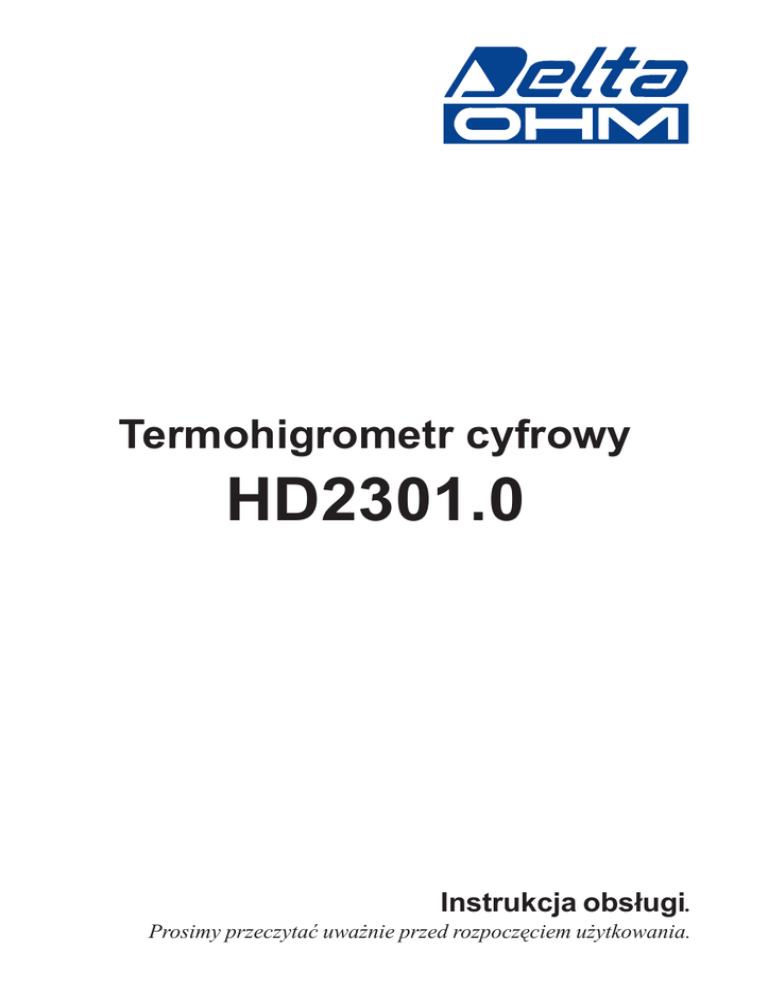 Termohigrometr cyfrowy HD2301.0 Instrukcja obs³ugi. Prosimy przeczytaæ uwa¿nie przed rozpoczêciem u¿ytkowania. Spis treœci 1. Opis ........................................................................................................ 6 2. Opis funkcji ............................................................................................. 6 3. Menu programowania .............................................................................. 9 4. Czujniki i pomiary ................................................................................. 10 4.1. Pomiary wilgotnoœci .......................................................................... 10 4.1.1. Dokonywanie pomiaru wilgotnoœci ................................................... 10 4.1.2. Kalibracja przyrz¹du wraz z czujnikami .......................................... 10 4.2. Bezpoœrednie wejœcie dla czujników Pt100 i Pt1000 ......................... 12 4.2.1. Jak mierzyæ temperaturê ................................................................. 12 4.2.2. Pod³¹czanie czujników z serii TP47 dla 4-przewodowego pod³¹czenia czujników Pt100 i Pt1000 ................................................................ 12 5. Ostrze¿enia .......................................................................................... 13 6. Komunikaty i niedomagania .................................................................. 14 7. Niski stan baterii i jej wymiana .............................................................. 16 7.1. Uwagi dotycz¹ce u¿ytkowania baterii ................................................ 16 8. Przechowywanie przyrz¹du ................................................................... 16 9. Dane techniczne ................................................................................... 17 9.1. Parametry termohigrometru ............................................................... 17 9.2. Parametry sond pomiarowych .............................................................. 17 9.2.1. Sondy Pt100 z modu³em SICRAM .................................................. 17 9.2.2. 4-przewodowe sondy Pt100 i 2-przewodowe Pt1000 ...................... 18 9.2.3. Sondy zintegrowane wilgotnoœci/temperatury .................................. 18 10. Sposób zamawiania .............................................................................. 19 10.1. Sondy temperatury z modu³ami SICRAM .......................................... 19 10.2. Sondy wilgotnoœci i temperatury ....................................................... 19 10.3. Sondy temperatury bez modu³u SICRAM .......................................... 20 10.4. Akcesoria ......................................................................................... 20 11. Notatki .................................................................................................. 21 4 HD2301.0 1. 2. 3. 4. 5. 6. 7. 8. 9. 10. 11. 12. 13. 8-pinowe z³¹cze DIN45326 dla sond pomiarowych Symbol baterii: wyœwietla stan roz³adowania baterii. WskaŸniki funkcji Pomocniczy wiersz wyœwietlacza. Przycisk DATA/ENTER: podczas normalnej pracy wyœwietla wartoœæ maksymaln¹ (MAX), minimaln¹ (MIN) i œredni¹ (AVG); wewn¹trz menu zatwierdza wprowadzone wartoœci parametrów. Przycisk CLR/ESC: podczas normalnej pracy kasuje wartoœci maksymaln¹ (MAX), minimaln¹ (MIN) i œredni¹ (AVG). Wewn¹trz menu anuluje aktualn¹ operacjê bez wprowadzania jakichkolwiek zmian. Przycisk HOLD / : – podczas normalnej pracy zatrzymuje wynik pomiaru na wyœwietlaczu; wewn¹trz menu zwiêksza wartoœæ bie¿¹cego parametru. Przycisk UNIT / MENU: pozwala na wybór jednostki miary dla mierzonego parametru; u¿yty wraz z przyciskiem DATA pozwala na wejœcie do menu Przycisk REL / : uaktywnia pomiar wzglêdny (wyœwietla ró¿nicê wzglêdem wartoœci jaka panowa³a w momencie uaktywnienia funkcji); wewn¹trz menu zmniejsza wartoœæ bie¿¹cego parametru. Przycisk ON-OFF/AUTO-OFF: w³¹cza i wy³¹cza zasilanie przyrz¹du; u¿yty razem z przyciskiem MENU blokuje automatyczne wy³¹czanie zasilania. Symbole MAX, MIN i AVG. G³ówny wiersz wyœwietlacza. Wiersz symboli i komentarzy. 5 1. OPIS Termohigrometr HD2301.0 jest przenoœnym przyrz¹dem, który mierzy temperaturê i wilgotnoœæ otaczaj¹cego œrodowiska. Przyrz¹d jest wyposa¿ony w du¿y wyœwietlacz LCD o œwietnej czytelnoœci prezentowanych wyników. Termometr mo¿e mierzyæ wilgotnoœæ i/lub temperaturê w dwóch trybach: • za pomoc¹ sond zespolonych, wyposa¿onych w czujnik temperatury Pt100 lub termoparê, do pomiaru temperatury i wilgotnoœci wzglêdnej • za pomoc¹ zanurzeniowych, penetracyjnych lub stykowych sond temperatury. Czujnikiem mo¿e byæ Pt100 lub Pt1000. Gdy jest pod³¹czona sonda zespolona wilgotnoœci/temperatury, przyrz¹d wyznacza i wyœwietla nastêpuj¹ce parametry: • wilgotnoœæ bezwzglêdna • punkt rosy • ciœnienie cz¹stkowe pary Sondy s¹ wyposa¿one w modu³ autodetekcji, z parametrami kalibracji fabrycznej zapisanej wewn¹trz jego pamiêci. Za pomoc¹ funkcji MAX, MIN i AVG mo¿na odczytaæ wartoœci maksymalne, minimalne oraz œrednie. Innymi dostêpnymi funkcjami s¹: • pomiar wzglêdny (REL) • funkcja HOLD • funkcja oszczêdzania baterii (mo¿e byæ zablokowana) Bardziej szczegó³owy opis w rozdziale 2. 2. OPIS FUNKCJI Przyciski na klawiaturze przyrz¹du posiadaj¹ dwie funkcje. Funkcja, której nazwa widnieje na przycisku jest funkcj¹ g³ówn¹. Funkcja, której nazwa widnieje nad przyciskiem jest funkcj¹ drugorzêdn¹. W normalnym trybie pracy przyrz¹du aktywne s¹ funkcje g³ówne. Po wejœciu do menu przyrz¹du uaktywniaj¹ siê funkcje pomocnicze (aby wejœæ do menu nale¿y jednoczeœnie nacisn¹æ przyciski [DATA] i [UNIT]). Naciœniêciu przycisku towarzyszy krótki sygna³ dŸwiêkowy. Gdy sygna³ jest d³ugi, oznacza u¿ycie nieprawid³owego przycisku. Ka¿dy przycisk ma przypisan¹ konkretn¹ funkcjê opisan¹ szczegó³owo poni
