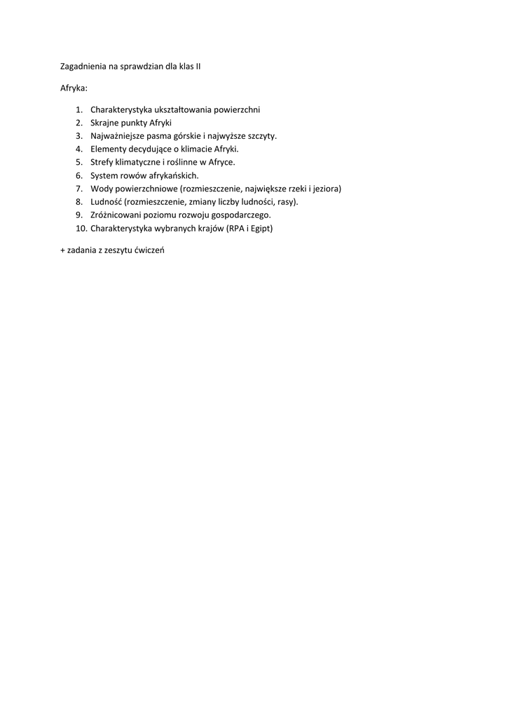 Zagadnienia na sprawdzian dla klas II Afryka: 1. Charakterystyka
