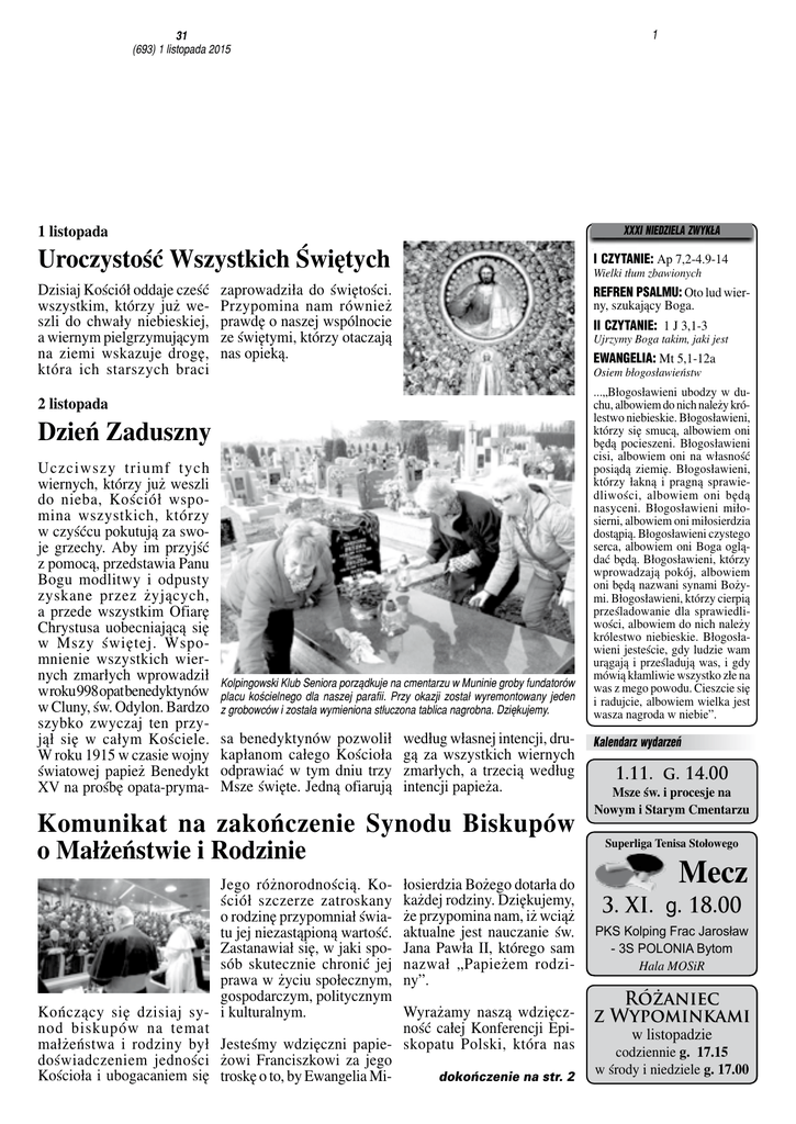 Gazetka parafialna 31/2015 - Parafia Chrystusa Króla w Jarosławiu
