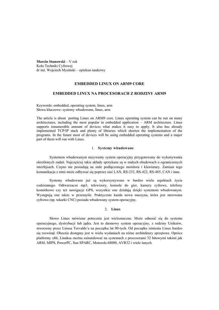 Marcin Stanowski – Embedded Linux na procesorach z rodziny ARM9