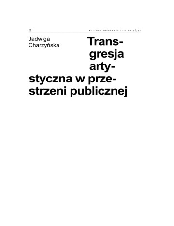 Jadwiga Charzyńska Transgresja artystyczna w przestrzeni publicznej