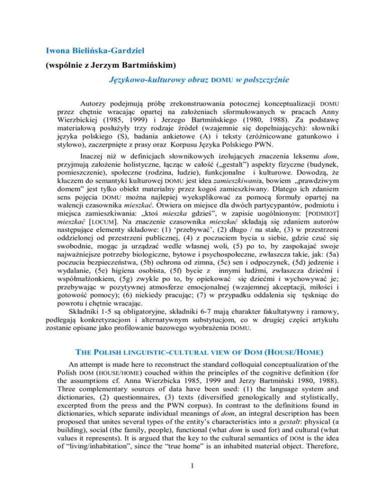 THE POLISH LINGUISTIC-CULTURAL VIEW OF DOM (HOUSE/HOME)