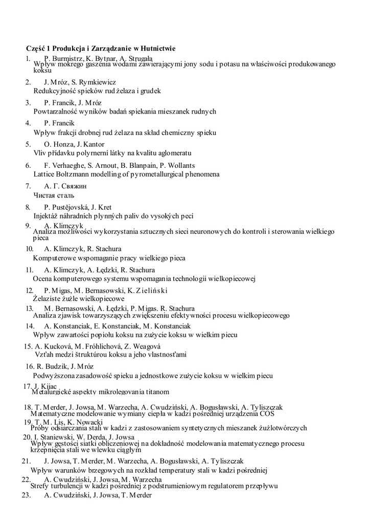 Część 1 Produkcja i Zarządzanie w Hutnictwie 1. P. Burmistrz, K