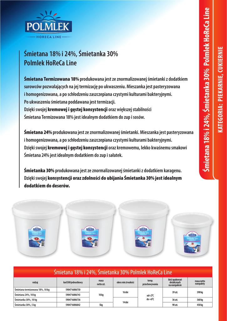 Śmietana 18% i 24%, Śmietanka 30% Polmlek HoReCa Line