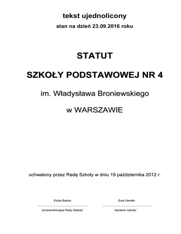 Statut szkoły - Szkoła Podstawowa Nr 4 w Warszawie