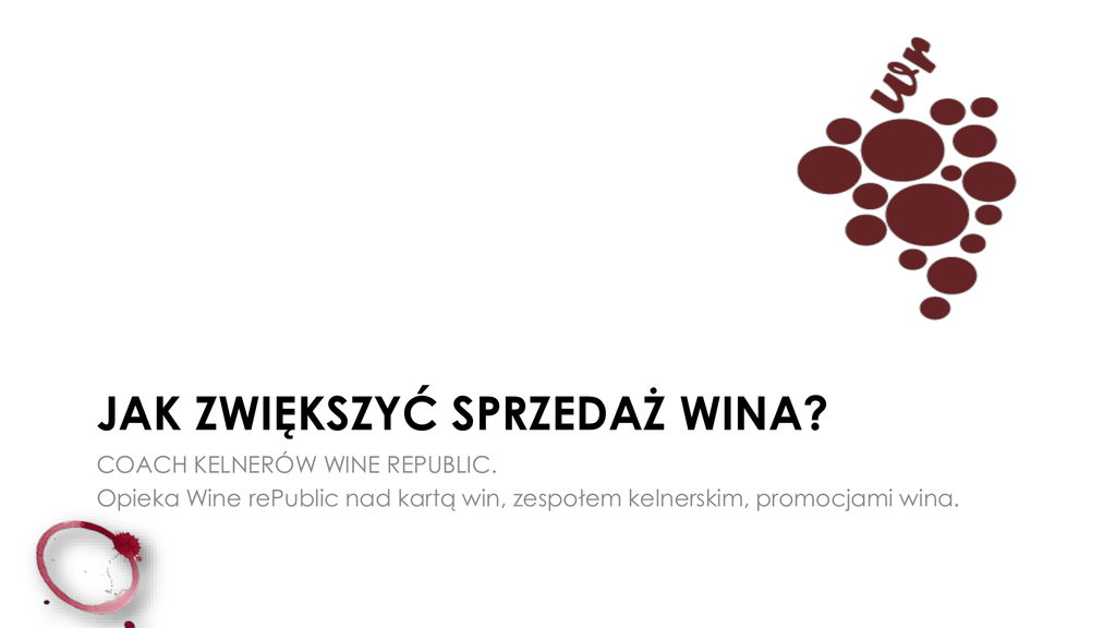 JAK ZWIĘKSZYĆ SPRZEDAŻ WINA? COACH KELNERÓW WINE REPUBLIC. Opieka Wine rePublic nad kartą win, zespołem kelnerskim, promocjami wina. Materiały Wine rePublic Natalia jako coach – jak mogę pomóc? Moja obecność na sali jest praktycznym treningiem dla kelnerów – wszystko, co omówiliśmy na szkoleniach: zasady obsługi, techniki sugestywnej sprzedaży i serwis – kelnerzy w praktyce zobaczą jak to robić. Kiedy warto skorzystać wprowadzasz nową kartę win – trening praktyczny dla zespołu o nowych winach. brakuje Ci pracowników – uzupełnię luki w grafiku, a przy okazji pokażę jak sprzedawać masz nowego pracownika – nauczę go jak rozmawiać z gośćmi o winie masz grupową rezerwację – pomogę wybrać i/lub serwować wino gościom. chcesz zorganizować wieczór z sommelierem – opowiem Twoim gościom o winach, zaproponuję połączenie z wybranymi daniami, od przystawki po deser. Materiały Wine rePublic Współpraca USŁUGI W RAMACH WSPÓŁPRACY USŁUGI ZE STAWKĄ DO UZGODNIENIA Szkolenia produktowe i serwisowe dla obsługi Rozszerzony kurs wiedzy o winie dla zespołu kelnerskiego 2 dni miesięcznie wspólnej pracy z obsługą – trening praktyczny Praca na Sali na zlecenie (powyżej uzgodnionych dni) Układanie karty win z ważnym udziałem win Wine rePublic Układanie karty win z ofert innych dostawców Obsługa sommelierska dla grup Dyżur sommelierski Promocja win Wine rePublic – dzień otwartej butelki, wieczór z winnicą itp. Degustacje komentowane Materiały Wine rePublic Kilka słów o mnie.. Posiadam ponad siedmioletnie doświadczenie w obsłudze gości restauracji. Mam certyfikat ukończenia międzynarodowego kursu WSET II – egzamin zdany z wyróżnieniem. Jestem członkiem Stowarzyszenia Sommelierów Polskich. Prowadzę szkolenia dla kelnerów i seminaria dla miłośników wina. Wino jest moją pasją, a swoją pracę wykonuję z pełnym zaangażowaniem.