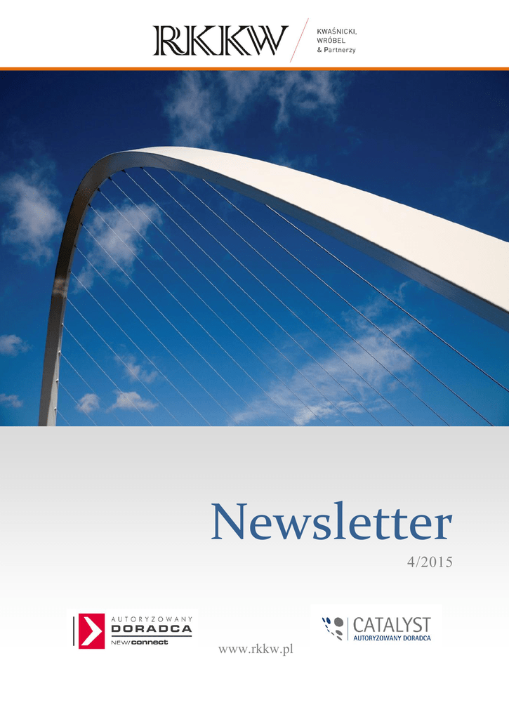 Newsletter 4/2015 www.rkkw.pl Spis treści Sukcesy Klientów Kancelarii RKKW ..................................................................................................... 3 Kancelaria RKKW doradzała KGHM przy squeeze out w Bipromecie .............................................. 3 Kancelaria RKKW wstrzymuje delisting Hutmen S.A. ...................................................................... 4 Seminaria i konferencje ........................................................................................................................... 5 I. Forum Grup Kapitałowych (21 - 22.5.2015 r.) ................................................................................ 5 Szkolenie „Spółka giełdowa w praktyce - od IPO poprzez obowiązki informacyjne, informacje poufne, znaczne pakiety akcji, spory korporacyjne aż po „delisting” (25 - 26.5.2015 r.)................... 6 Pakiet szkoleń „Środki europejskie 2014-2020 – problemy prawne” (20.5.2015 r., 17.6.2015 r. oraz 23.9.2015 r.) ........................................................................................................................................ 6 Kurs „Certyfikowany Corporate Governance Manager” (13 - 14.5.2015 r.) ...................................... 7 Warsztaty „Najnowsze zmiany w obowiązkach informacyjnych” (14 - 15.5.2015 r.) ....................... 7 Z życia Kancelarii RKKW ...................................................................................................................... 9 Dr Kwaśnicki podczas ORLEN Warsaw Marathon (26.4.2015 r.) wspiera cele Kompanii Wrażeń .. 9 Publikacje współpracowników Kancelarii RKKW ............................................................................. 9 Z Bloga: PRAWO BIZNESU – Law in Action ..................................................................................... 10 Nowa cena milczenia......................................................................................................................... 10 Aktualności w prawie ............................................................................................................................ 11 Bankowy tytuł egzekucyjny niezgodny z Konstytucją ..................................................................... 11 Jedyny właściciel spółki działa w formie pisemnej .......................................................................... 11 SN instruuje jak liczyć terminy z KSH ............................................................................................. 11 Spór konsumenta z przedsiębiorcą zakończy się szybciej................................................................. 12 Nowy pracodawca przejmuje pracowników bez zakazu konkurencji ............................................... 12 Najnowsze zmiany legislacyjne – „Alert prawny” ................................................................................ 13 Praktyka ................................................................................................................................................. 14 Nowe prawo restrukturyzacyjne ........................................................................................................ 14 2 | Strona Sukcesy Klientów Kancelarii RKKW Departament Prawa Rynku Kapitałowego oraz Departament Korporacyjny Kancelaria RKKW doradzała KGHM przy squeeze out w Bipromecie W dniu 22.4.2015 r. KGHM Polska Miedź S.A. ogłosiła żądanie sprzedaży wszystkich akcji posiadanych przez pozostałych akcjonariuszy spółki Bipromet S.A. (tzw. squeeze out). Jest to kolejny etap realizacji procesu tzw. „delistingu” Bipromet S.A., tj. procesu zniesienia dematerializacji jej akcji oraz wykluczenia ich z obrotu na rynku regulowanym prowadzonym przez Giełdę Papierów Wartościowych w Warszawie S.A. Kancelaria RKKW doradzała spółce KGHM Polska Miedź S.A. także na etapie wezwania na sprzedaż akcji Bipromet. W jego wyniku KGHM Polska Miedź S.A. osiągnęła 91,23% w ogólnej liczbie głosów w Bipromet S.A., co dało jej prawo do ogłoszenia żądania sprzedaży pozostałych akcji w ramach przymusowego wykupu. Doradztwo prawne w ramach tego projektu świadczą dr Radosław L. Kwaśnicki, Partner Zarządzający kierujący Departamentem Prawa Rynku Kapitałowego Kancelarii RKKW oraz mec. Dariusz Kulgawczuk, Partner kierujący Departamentem Korporacyjnym Kancelarii RKKW, który złożył podpis pod wezwaniem w imieniu KGHM Polska Miedź S.A. „Jest to kolejny projekt potwierdzający mocną pozycję Kancelarii RKKW na płaszczyźnie prawa spółek i prawa rynku kapitałowego.” – wskazuje dr Radosław L. Kwaśnicki. Treść żądania O sprawie pisze m. in. portal Lex.pl. 3 | Strona Departament Prawa Spółek Kancelaria RKKW wstrzymuje delisting Hutmen S.A. W dniu 22.1.2015 r. Sąd Okręgowy w Warszawie, w sprawie o sygn. akt XX GC 1189/14, zabezpieczył powództwo mniejszościowego akcjonariusza spółki Hutmen S.A. o uchylenie uchwały Nadzwyczajnego Walnego Zgromadzenia Hutmen S.A. z dnia 31.10.2014 r. w sprawie zniesienia dematerializacji akcji tej spółki oraz wycofania ich z obrotu regulowanego w ten sposób, iż wstrzymał wykonalność wskazanej uchwały. Postanowienie Sądu Okręgowego zostało wydane w wyniku uwzględnienia argumentów wnioskodawcy, który wykazywał, iż cena określona w wezwaniu na sprzedaż akcji Hutmen S.A. nie odpowiadała ich wartości godziwej, w szczególności ze względu na fakt, iż była ona niższa niż 50% ich wartości księgowej, a także zupełnie nie uwzględniała wartości dużej nieruchomości położonej we Wrocławiu, wchodzącej w skład majątku spółki. "Sąd potwierdził nasze stanowisko, iż określenie ceny w wezwaniu na poziomie niewiele odbiegającym od ceny minimalnej wskazanej w Ustawie o Ofercie jest – od strony formalnej – wprawdzie zgodne z prawem, jednakże można uznać je za naruszające dobre obyczaje i zmierzające do pokrzywdzeni