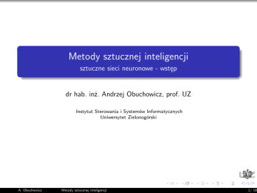 Metody sztucznej inteligencji - Instytut Sterowania i Systemów