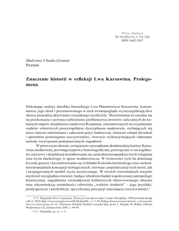 Znaczenie historii w refleksji Lwa Karsawina. Prolego - Filo