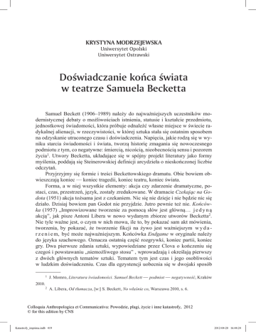 Doœwiadczanie koñca œwiata w teatrze Samuela Becketta