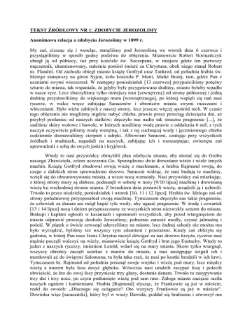 TEKST ŹRÓDŁOWY NR 1: ZDOBYCIE JEROZOLIMY Anonimowa