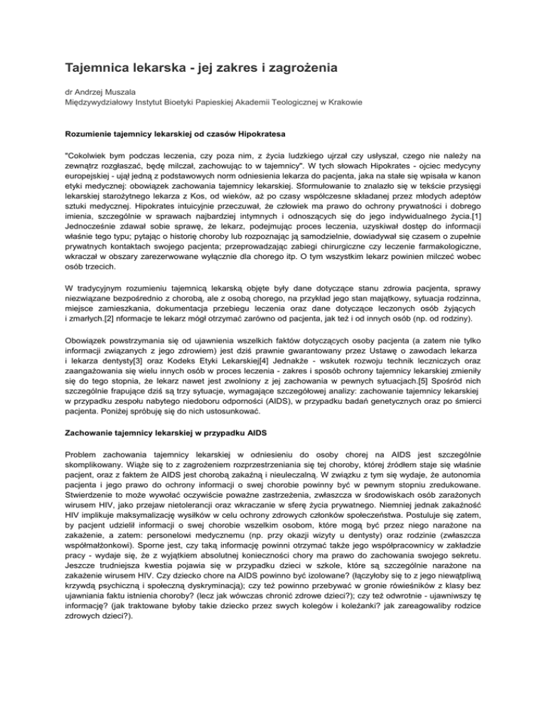 zaangażowania się wielu innych osób w proces leczenia - zakres i sposób ochrony tajemnicy lekarskiej zmieniły