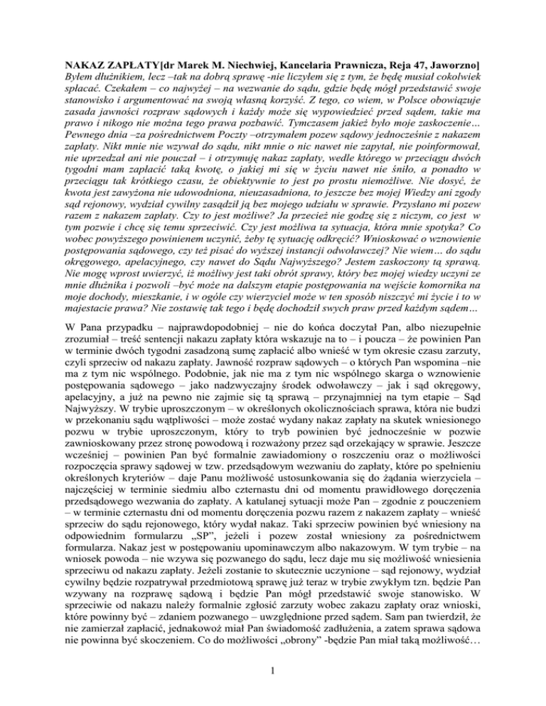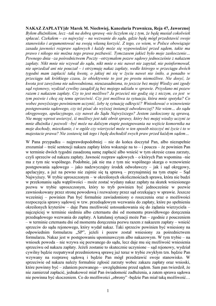 1 NAKAZ ZAPŁATY[dr Marek M. Niechwiej, Kancelaria Prawnicza