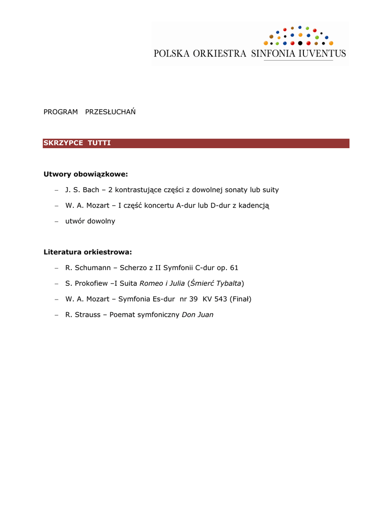 PROGRAM PRZESŁUCHAŃ SKRZYPCE TUTTI Utwory