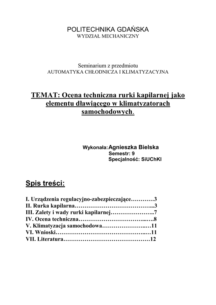 Ocena techniczna rurki kapilarnej jako elementu dławiącego w