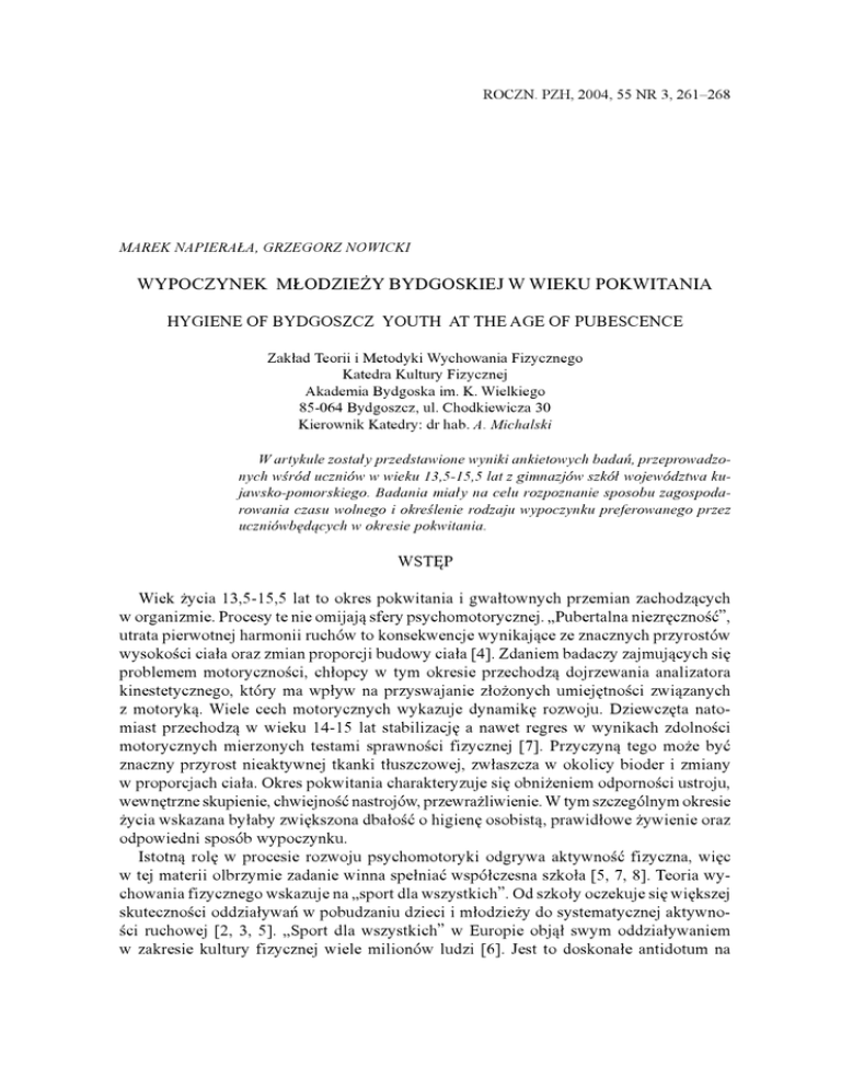 Nr 3 261 WYPOCZYNEK M£ODZIE¯Y BYDGOSKIEJ W WIEKU