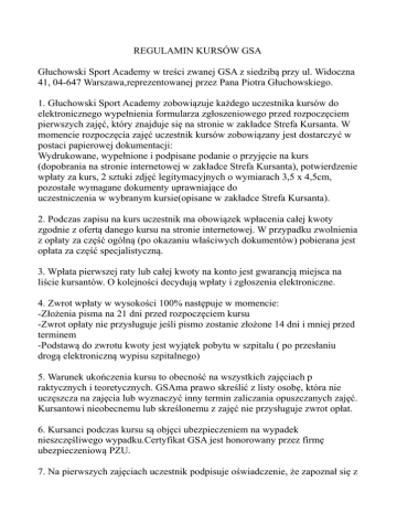 Regulamin kursów GSA - Głuchowski Sport Academy