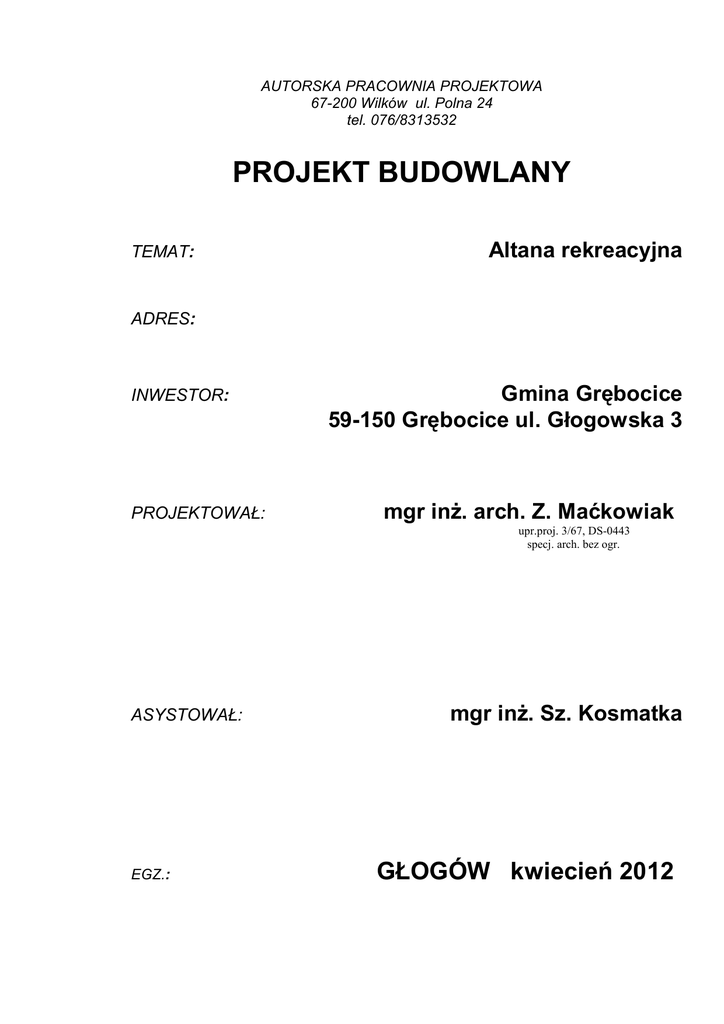 AUTORSKA PRACOWNIA PROJEKTOWA 67-200 Wilków ul. Polna 24 tel. 076/8313532 PROJEKT BUDOWLANY TEMAT: Altana rekreacyjna ADRES: INWESTOR: PROJEKTOWAŁ: Gmina Grębocice 59-150 Grębocice ul. Głogowska 3 mgr inŜ. arch. Z. Maćkowiak upr.proj. 3/67, DS-0443 specj. arch. bez ogr. ASYSTOWAŁ: EGZ.: mgr inŜ. Sz. Kosmatka GŁOGÓW kwiecień 2012 PROJEKT ZAGOSPODAROWANIA DZIAŁKI SPIS TREŚCI 1. PRZEDMIOT INWESTYCJI .......................................................................................................................... 3 2. MATERIAŁY, PODSTAWY PRAWNE I BIBLIOGRAFIA........................................................................ 3 3. OPIS KONSTRUKCJI WIATY ....................................................................................................................... 3 3.1. DANE CHARAKTERYSTYCZNE ALTANY ......................................................................................................... 3 3.2. ZAŁOśENIA PRZYJĘTE DO OBLICZEŃ............................................................................................................. 3 3.3. PODSTAWOWE WYNIKI OBLICZEŃ STATYCZNYCH ......................................................................................... 4 3.4. FUNDAMENTY .............................................................................................................................................. 4 3.5. KONSTRUKCJA ALTANY ............................................................................................................................... 4 3.6. OPIS NAWIERZCHNI (POSADZKI) .................................................................................................................. 5 SPIS RYSUNKÓW Rys. 1 RZUT FUNDAMENTÓW RZUT PRZYZIEMIA RZUT POŁACI DACHOWEJ Rys. 2 ELEWACJA PRZEKRÓJ POPRZECZNY RZUT WIĘŹBY DACHOWEJ DACHOWEJ ZAŁĄCZNIKI 1. Uprawnienia projektanta 2 PROJEKT ZAGOSPODAROWANIA DZIAŁKI 1. Przedmiot inwestycji Przedmiotem projektu jest opracowanie typowej altany rekreacyjnej do zastosowania jako element małej architektury na terenach publicznych (rekreacyjnosportowych) Gminy Grębocice. Wykonanie robót budowlanych związanych z budową altany, zgodnie z art.30 Prawa Budowlanego (Dz. U. Nr 89, poz. 414 z 1994r. z późn. zm.), o pow. uŜytkowej nie większej niŜ 25m2 wymaga zgłoszenia w Starostwie Powiatowym w Polkowicach. 2. Materiały, podstawy prawne i bibliografia Przepisy budowlane i normy PN: • Prawo budowlane - ustawa z dn. 07.07.1994 (Dz. U. Nr 89, poz. 414 z 1994r. z późn. zm.), • Rozporządzenie Ministra Infrastruktury z dn. 12.04.2002r w sprawie warunków technicznych, jakim powinny odpowiadać budynki i ich usytuowanie (Dz. U. Nr75, poz. 690 z 2002r z późn. zm.), • • • • PN-82/B-02000 PN-82/B-02001 PN-82/B-02003 PN-80/B-02010 • PN-77/B-02011 „Zasady ustalania obciąŜeń”, „ObciąŜenia stałe”, „Podstawowe obciąŜenia technologiczne i montaŜowe”, „ObciąŜenia śniegiem”, „ObciąŜenia wiatrem”, • PN-EN 350-2 Naturalna trwałość drewna litego. Wytyczne dotyczące naturalnej trwałości i podatności na nasycanie wybranych gatunków drewna mających znaczenie w Europie. • PN-EN 335-2 Definicja klas zagroŜenia ataku biologicznego. Trwałość drewna i materiałów drewnopochodnych. Zastosowanie do drewna litego. • PN-EN 351-1 Drewno lite zabezpieczone środkiem ochrony. Trwałość drewna i materiałów drewnopochodnych. Klasyfikacja wnikania i retencji środka ochrony. 3. Opis konstrukcji wiaty 3.1. Dane charakterystyczne altany • • • • Powierzchnia całkowita / zabudowy Powierzchnia uŜytkowa Kubatura powierzchnia posadzki 23,0 m2, 22,0 m2, 60,0 m3. 41,2 m2. 3.2. ZałoŜenia przyjęte do obliczeń • I kategoria geotechniczna posadowienia obiektu • I strefa obciąŜenia wiatrem i śniegiem • I strefa przemarzania gruntu • Proste schematy statyczne: - więźba dachowa - schemat krokwiowy 3 PROJEKT ZAGOSPODAROWANIA DZIAŁKI 3.3. Podstawowe wyniki obliczeń statycznych 3.3.1. Sprawdzenie warunków posadowienia - I stanu granicznego nośności podłoŜa Grunt: piaski średnie ID=0,50, poziom wody 1,5m poniŜej poziomu posadowienia QfNB= 180 kN/m2 Parametry geotechniczne dla piasku drobnego ID= 0,65: • qr= 0,9*18,5=16,65 kN/m3 • Φur= 0,9*29,70 =33,620; ND=17,8; NB=7,20; • dmin= 0,80 m Posadowienie– stopa fundamentowa max obciąŜenie gruntu pod ławą fundamentową - Nr = 13,3 kN /m2 Nr = 13,3 kN/m2 < 0,81* QfNB = 0,81*180 = 145 kN/m2 3.3.2. Obliczenia statyczno-wytrzymałościowe elementów altany Obliczenia – do wglądu u projektanta. 3.4. Fundamenty Altankę posadowiono na 6-ciu stopach blokowych o wymiarach 50/50/70 z betonu B20. Poziom posadowienia ze względu na zachowanie strefy przemarzania -0,80m. W stopie naleŜy zakotwić element mocujący słupa - Koelner D-TC 1416 (stal ocynkowana). 3.5. Konstrukcja altany Konstrukcja altany oparta jest na elementach z drewna sosnowego klasy K27 (C24): - słupów 14/14 w układzie sześciobocznym 6-ciu, - płatwiach 14/14, - krokwiach glównych 10/16, - krokwiach pośrednich 8/16, - mieczach 10/10 - balustrady z profili 8/10, 8/8 i 8/6cm. Rysunki wykonawcze altany przedstawiają rys. 1 i 2. Bryła dachu jest sześciospadkowa o spadku kaŜdej połaci dachowej wynoszącej 22o Wszystkie połączenia więźby dachowej wzmacniać naleŜy jako gwoździowane lub skręcane, zaleca się zastosowanie takŜe typowych łączników np f-my BMF. 4 PROJEKT ZAGOSPODAROWANIA DZIAŁKI Wszystkie elementy drewniane naleŜy przeheblować i zaimpregnować do granicy trudnozapalności preparatem ALTAXIN min. dwukrotnie. Poszycie stanowi podbitka świerkowa gr. 19m (połączenia na pióro - wpust). Okapy wykończyć obróbką blacharską (okapową) a blachy stalowej powlekanej- obróbka w rozwinięciu 15cm. Pokrycie stanowi papa asfaltowa podkładowa (przybijana na papiaki lub zszywki) oraz gonty bitumiczne. Zestawienie elementów drewnianych typ elementu symbol długość r