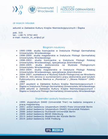 Pełny Biogram - Instytut Filologii Germańskiej UWr