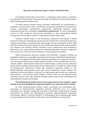 Znaczenie światła sztucznego w chowie i hodowli drobiu W