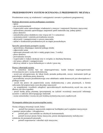 PRZEDMIOTOWY SYSTEM OCENIANIA Z PRZEDMIOTU MUZYKA
