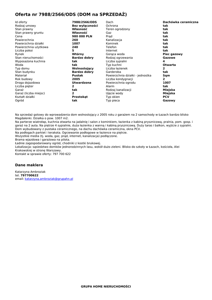 Oferta nr 7988/2566/ODS (DOM na SPRZEDAŻ)