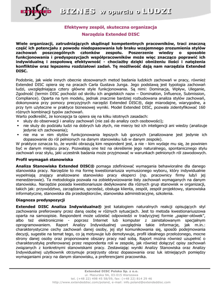 Efektywny zespół, skuteczna organizacja Narzędzia Extended DISC