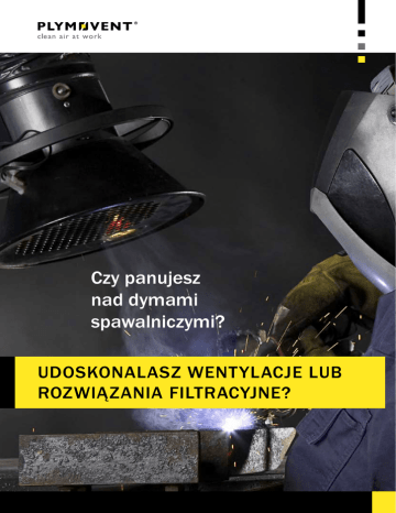 Czy panujesz nad dymami spawalniczymi? Udoskonalasz wentylacje lub rozwiązania filtracyjne? Czy kiedykolwiek zastanawiałeś się nad znaczeniem czystego powietrza? My tak. Przez ponad 30 lat było naszym celem, aby zapewnić czyste powietrzu w Twoim środowisku pracy. Zapewniamy produkty wysokiej jakości, nie tylko do ochrony spawaczy, ale także osób pracujących w pobliżu, przed wdychaniem niebezpiecznych dymów spawalniczych. Oferujemy szeroki wachlarz odciągów powietrza oraz systemów filtracyjnych, popartych kompletnym serwisem inżynieryjnym. Dlacze go Plymovent? 2 Odpowiedź na potrzeby klientów Rozwiązania Wiedza rozwinięta poprzez lata Wysokiej jakości produkty Światowa obecność Zagrożenia dla zdrowia poprzez wdychanie dymów i gazów spawalniczych. Utrzymuj zanieczyszczenia spawalnicze z dala od siebie. Dymy/pyły Możliwe skutki Możliwe długookresowe skutki Dymy spawalnicze (ogólnie) Chrom (w dymach, podczas spawania stali nierdzewnej) Nikiel (w dymach, podczas spawania stali nierdzewnej) Aluminium Chrypka, ból gardła, podrażnienie oczu, gorączka Zapalenie oskrzeli Zachorowanie na raka Gorączka Zachorowanie na raka Podrażnienie dróg oddechowych Mangan Cynk Miedź Magnez Ołów Gazy Zapalenie płuc Gorączka Gorączka Podrażnienie dróg oddechowych Zmiany w krwi i nerkach Możliwe skutki Tlenek azotu Dwutlenek węgla Ozon Podrażnienie oskrzeli oraz oczu, obrzęk płuc Problemy z oddychaniem, utrata przytomności Podrażnienie oskrzeli oraz oczu, obrzęk płuc Uszkodzenia centralnego systemu nerwowego Reprotoxic Możliwe długookresowe skutki Zapalenie Oskrzeli Dlacze go odc ią g do pył ów? Dymy spawalnicze, kurz szlifierski, mgła olejowa; ogólnie wszelkie zanieczyszczenia w przemyśle metalowym. Spawacze oraz osoby w pobliżu są narażeni na owe zanieczyszczenia. Jest niezwykle ważne, aby stworzyć zdrowsze i bezpieczniejsze miejsce pracy, poprzez redukcję takich zagrożeń. Skala ochrony jest niezmiernie istotnym elementem. Ważny jest fakt, iż standardy międzynarodowe zostały ustanowione aby ją regulować. Dymy, niewielkie elementy oraz płynne resztki metalu, muszą być skutecznie rozdzielone przez odciągi i filtry. Zapewnia to lepsze poczucie spawaczy co pozwala na efektywniejsza pracę, czego wynikiem jest większa produkcja i niższa nieobecność wywołana chorobami. 3 J a k to rob i my Opierając się na naszych doświadczeniach, rozwinęliśmy skuteczne rozwiązanie, które nazywamy „rozwiązaniami inżynieryjnymi”. To rozwiązanie zapewnia czyste powietrze na stanowisku pracy, przy niskich kosztach i łatwej obsłudze. Cały proces to 7 etapów: analizowanie, projektowanie, zaopatrywanie, instalowanie, pozwolenia, serwisowanie. Badanie 4 Planowanie Projektowanie Instalowanie Uprawnienia Trenowanie Serwis N asze bada nia P la n owa n ie Każdy klient ma indywidualne wymagania. Aby je spełnić, potrzebny jest odpowiedni wywiad; odpowiedz na pytania odnośnie procesu spawania, ilości spawaczy oraz ilości miejsc spawalniczych, ich rozmieszczenia, potrzeb wentylacyjnych, przepisów lokalnych oraz wymaganego systemu kontroli. Kończąc pierwszy etap, mamy informacje na temat tego, co musimy zrobić. Opierając się na informacjach uzyskanych podczas wywiadu, tworzymy plan do osiągnięcia najlepszej jakości powietrza w miejscu pracy. Wykorzystujemy posiadane przez nas urządzenia do wykonania solidnego systemu i optymalnych rozwiązań dla zapewnienia łatwej obsługi oraz czystego powietrza na stanowisku pracy. Pro je k towa nie P o z wo le n ia Na etapie projektowania wykorzystujemy urządzenia wybrane w fazie planowania poprzez przeliczenia ciśnień, wielkości filtrów, wentylatorów itp. Elastyczność naszych produktów pozwala nam zoptymalizwać cały system pod względem bezpieczeństwa, ekonomiki oraz obsługi. W rezultacie powstanie system odpowiadający Twoim dzisiejszym wymaganiom i umożliwiający rozwój w przyszłości. Kiedy faza instalacji się skończy, ustawiamy system upewniając się, że wszystko działa poprawnie. Nasze ciągłe dążenie do perfekcji stworzyło system godny zaufania dzisiaj i w przyszłych latach. In s talowa nie Kiedy faza projektowania się skończy musimy zamontować cały system. Dzięki posiadaniu przez nas dużego doświadczenia w dostarczaniu systemów, sam możesz skupić się na swoim biznesie. S z ko le n ie Chętnie dzielimy się naszą wiedzą technologiczną. Mamy możliwość podania Ci pomocnej dłoni, abyś mógł osiągnąć jak najwięcej z naszych urządzeń. S e rwi s i ko n se rwac ja . Dzisiaj bezpieczna obsługa w łańcuchu produkcyjnym jest niezbędna do zapewnienia wysokiej wydajności pracy. Dlatego też oferujemy pełny serwis. Nasi inżynierowie sprawią, że Twój system wentylacyjny będzie w doskonałym stanie i odpowiednio użytkowany. 5 Rozwiązania Różnorodne metody (w zależności od efektywności) Re du kcja dymów Pierwszym krokiem w stronę stworzenia czystego powietrza na stanowisku pracy, jest upewnienie się, że wybrana została najlepsza aplikacja dla Twojego procesu spawania. Taka aplikacja umożliwia wykonywanie alternatywnych metod spawania. Ważne jest, aby spawany materiał był czysty, np. usunięty olej, wierzchnia warstwa itp. Ze względu na jakość, wielu naszych klientów rozważa ten pierwszy krok. Nasza radą jest skontaktowanie się z Twoim dostawcą maszyn aby skonsultować jego doświadczenie w spawalnictwie. Niestety ten pierwszy etap jest zwykle niewystarczający do upewnienia się o bezpieczeństwie pracy. Potrzebny jest kolejny etap. Odci ąg przy źródl e Drugim krokiem do rozważenia jest usunięcie dymów spawalniczych z miejsca ich powstawania. Tylko z odciągiem dymów znad miejsca pracy spawacz jest w pełni chroniony. Odciąg przy źródle jest preferowany na stanowisku pracy w postaci np. stołów z dolnym odciągiem, co jest kombinacją warsztatu pracy z wyciągiem do dymów. Kolejną metodą jest zastosowanie
