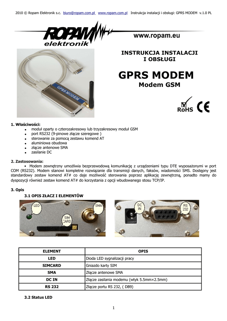 Instrukcja instalacji i obsługi: GPRS MODEM