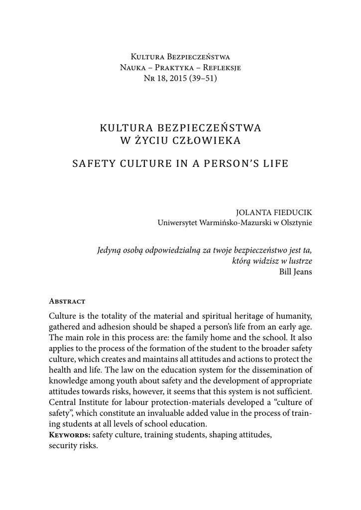 kultura bezpieczeństwa w życiu człowieka safety culture in a
