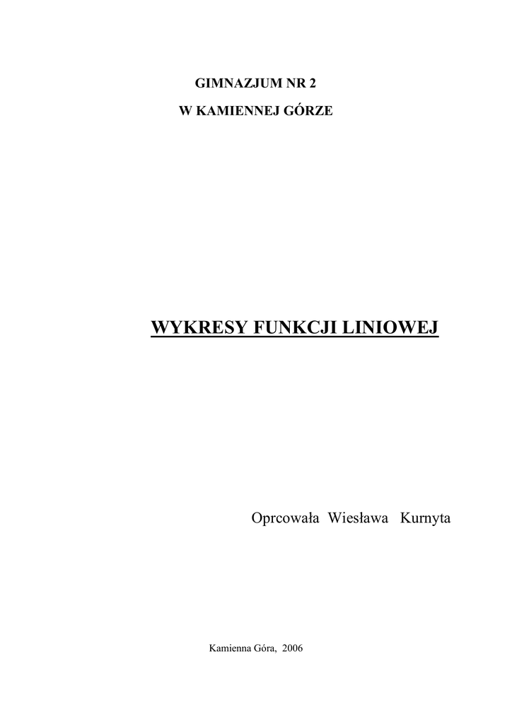 Konspekt - matematyka - Wykresy funkcji liniowej